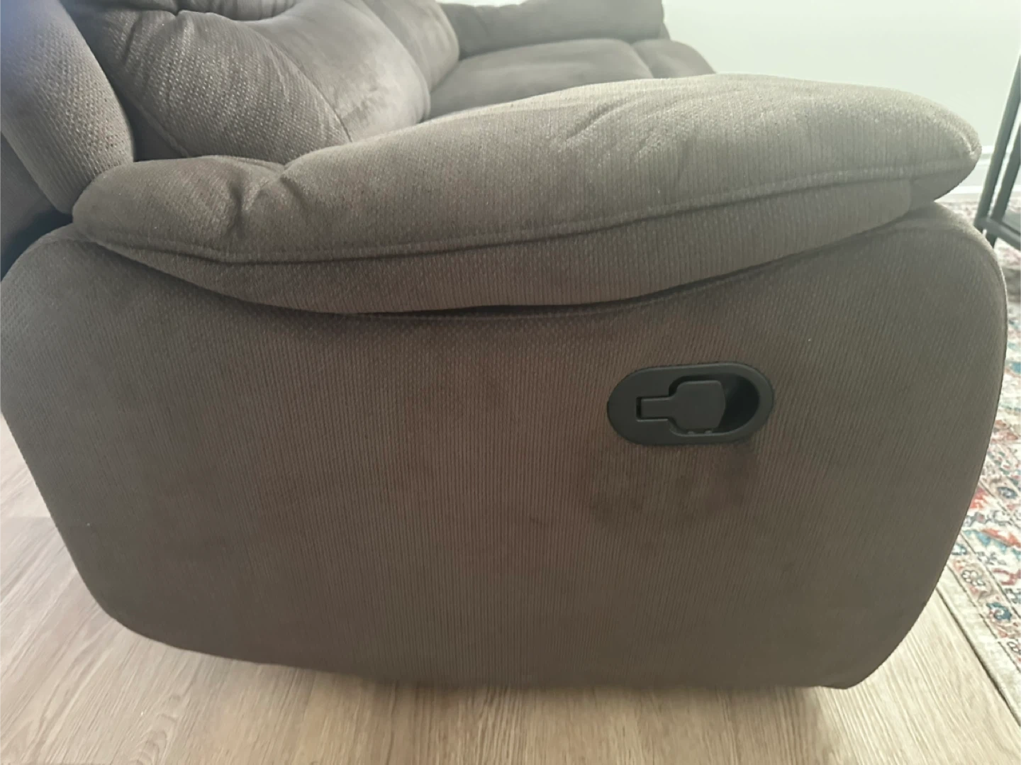 Comfortable two-seater recliner sofa in a rich chocolate brown color. Both seats recline smoothly and are very comfortable for relaxing, watching TV, or reading.