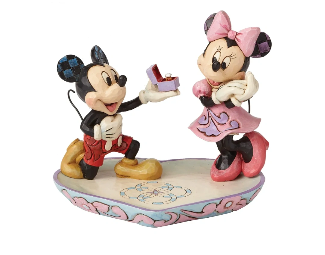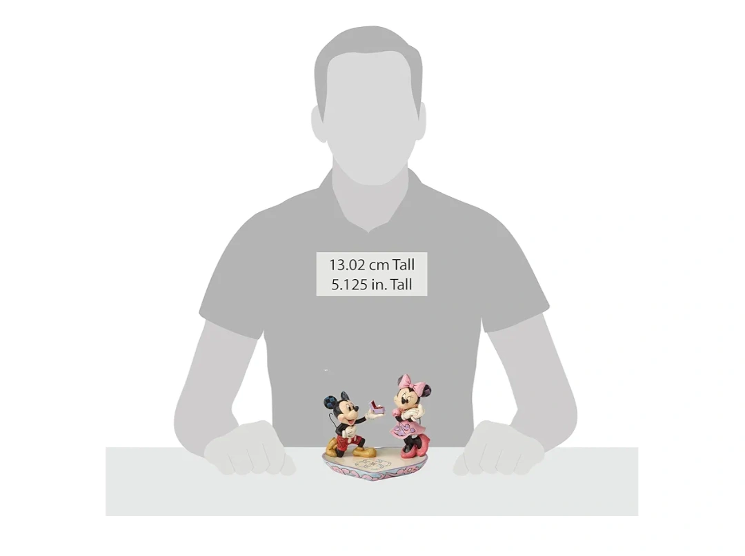 9New This is a Jim Shore figurine featuring Mickey Mouse proposing to Minnie Mouse. It's a sweet scene with lots of detail. The figurine is about 5.125 inches tall.