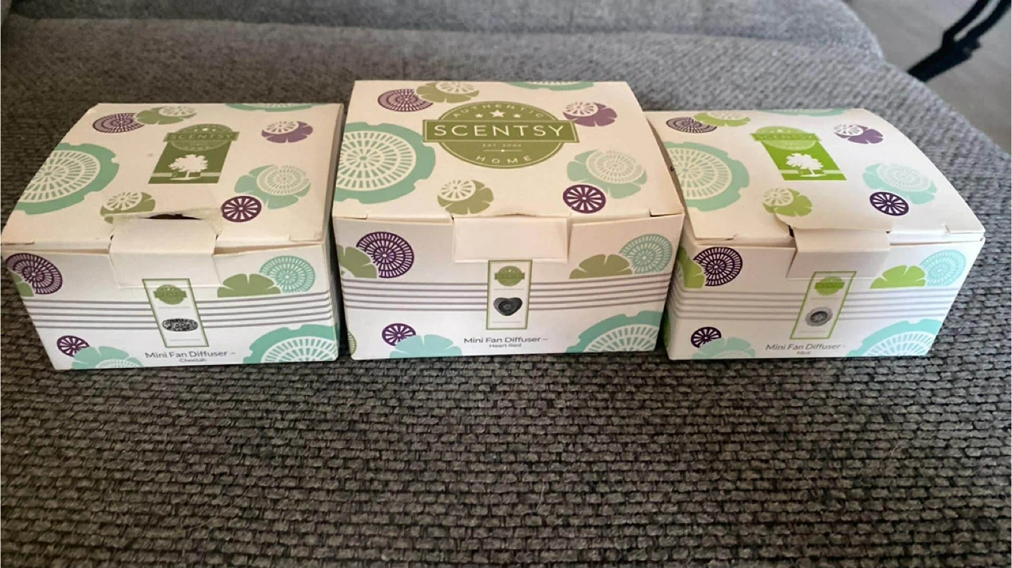 45I have some Scentsy Mini Fan Diffusers for sale! They're brand new in their original boxes and include the charger. Available in Cheetah and Heart Red patterns. Perfect for adding a touch of fragrance to any small space. $20 each Pick up only Park and Gibb Oshawa