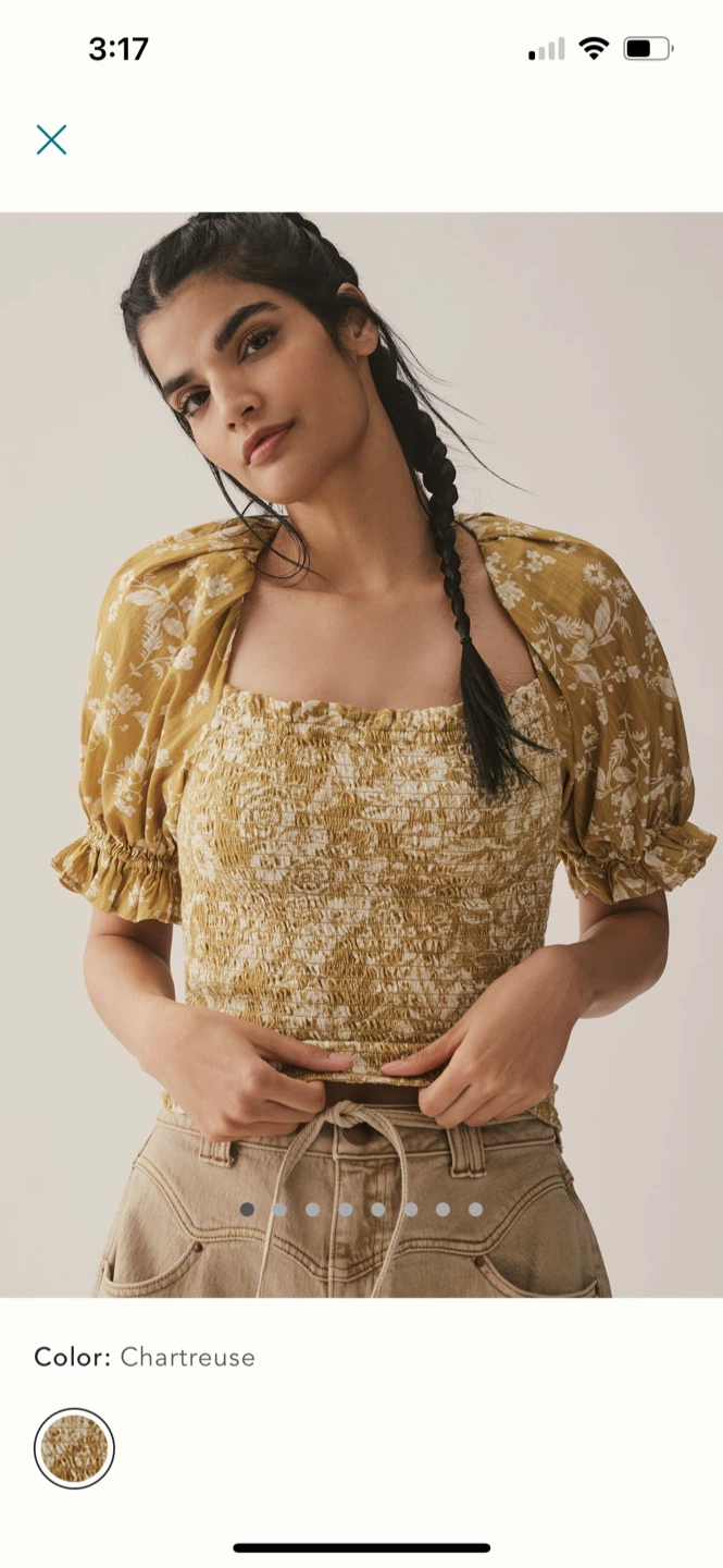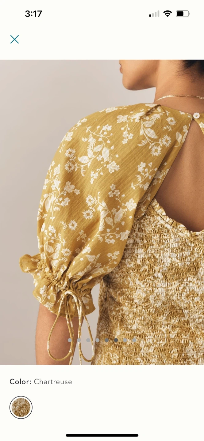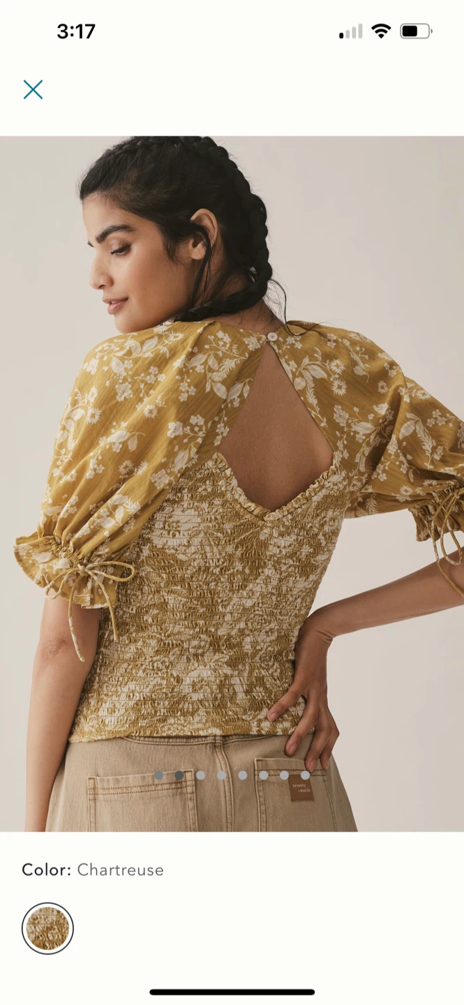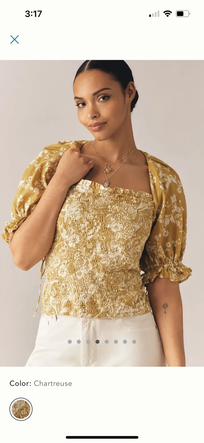 BNWT Anthropologie Smocked Puff Sleeve Top XXS