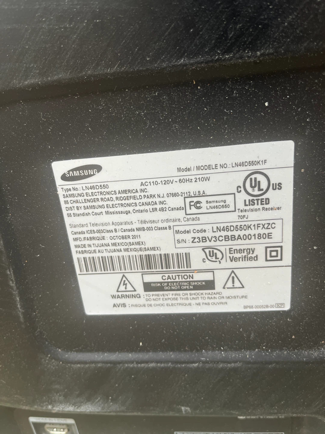 Selling a Samsung LN46D550 46-inch LCD TV. It's a 1080p television, perfect for streaming your favourite shows and movies on it with Roku or any other streaming device plugged in.