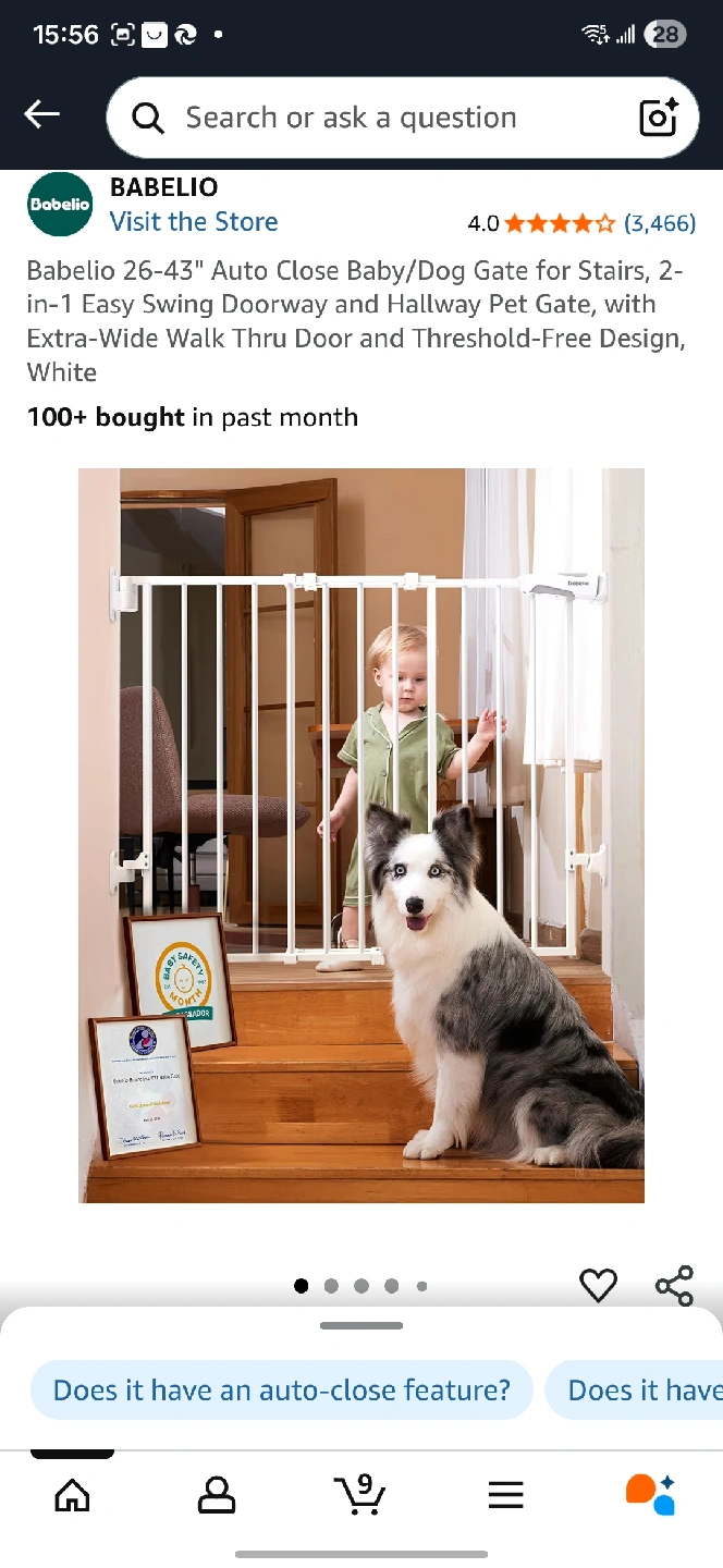 Babelio 26-43" White Auto Close Baby/Dog Gate