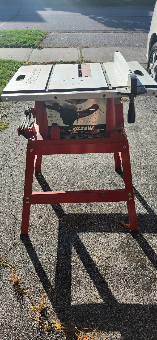 115Skil Saw table saw in good condition and ready for your next project! It's sturdy and reliable, perfect for woodworking. 10in blade and 15amps.