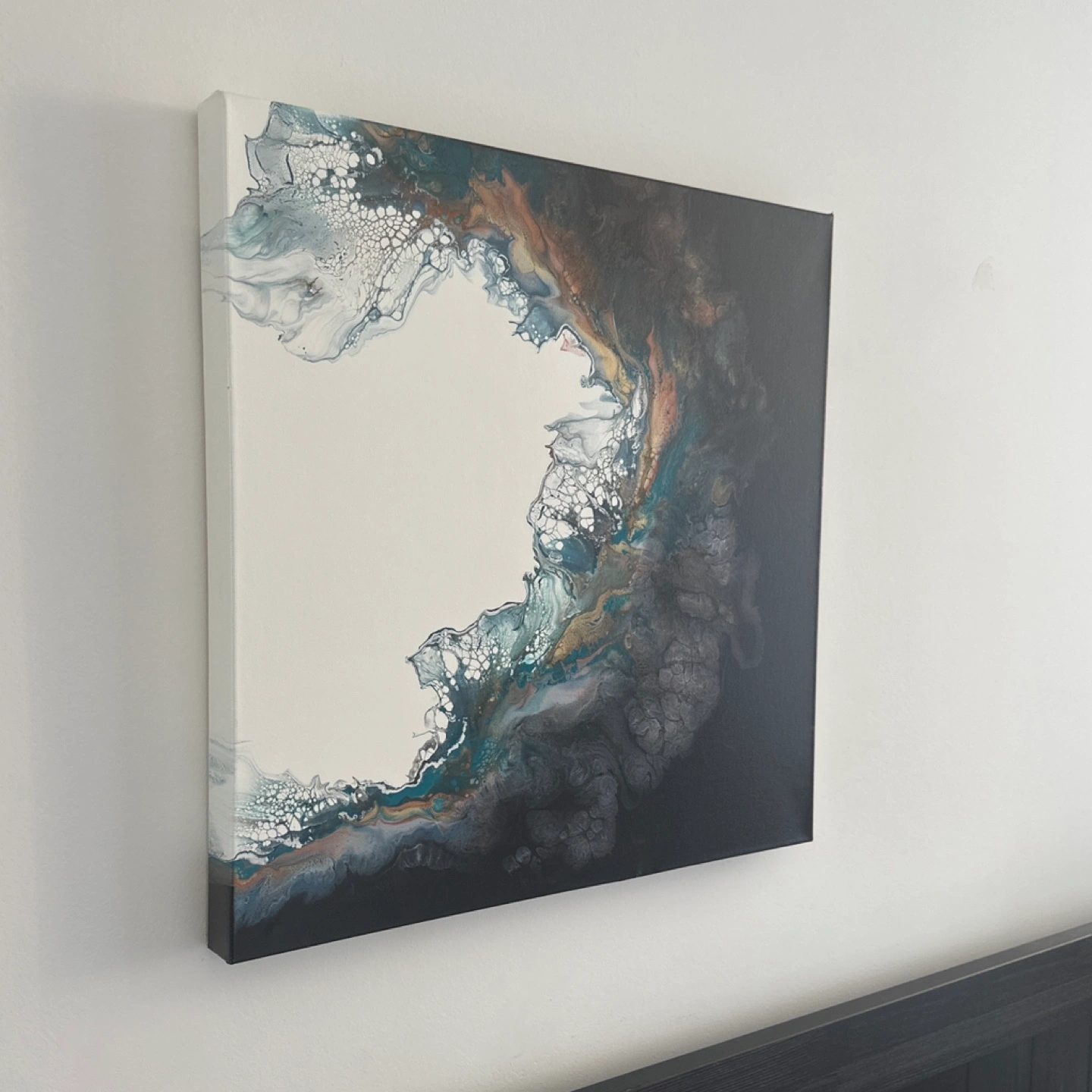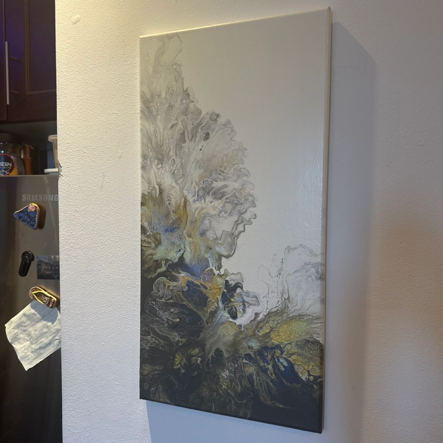 2 amazing modern oil drip paintings commissioned with a Canadian artist for my place.