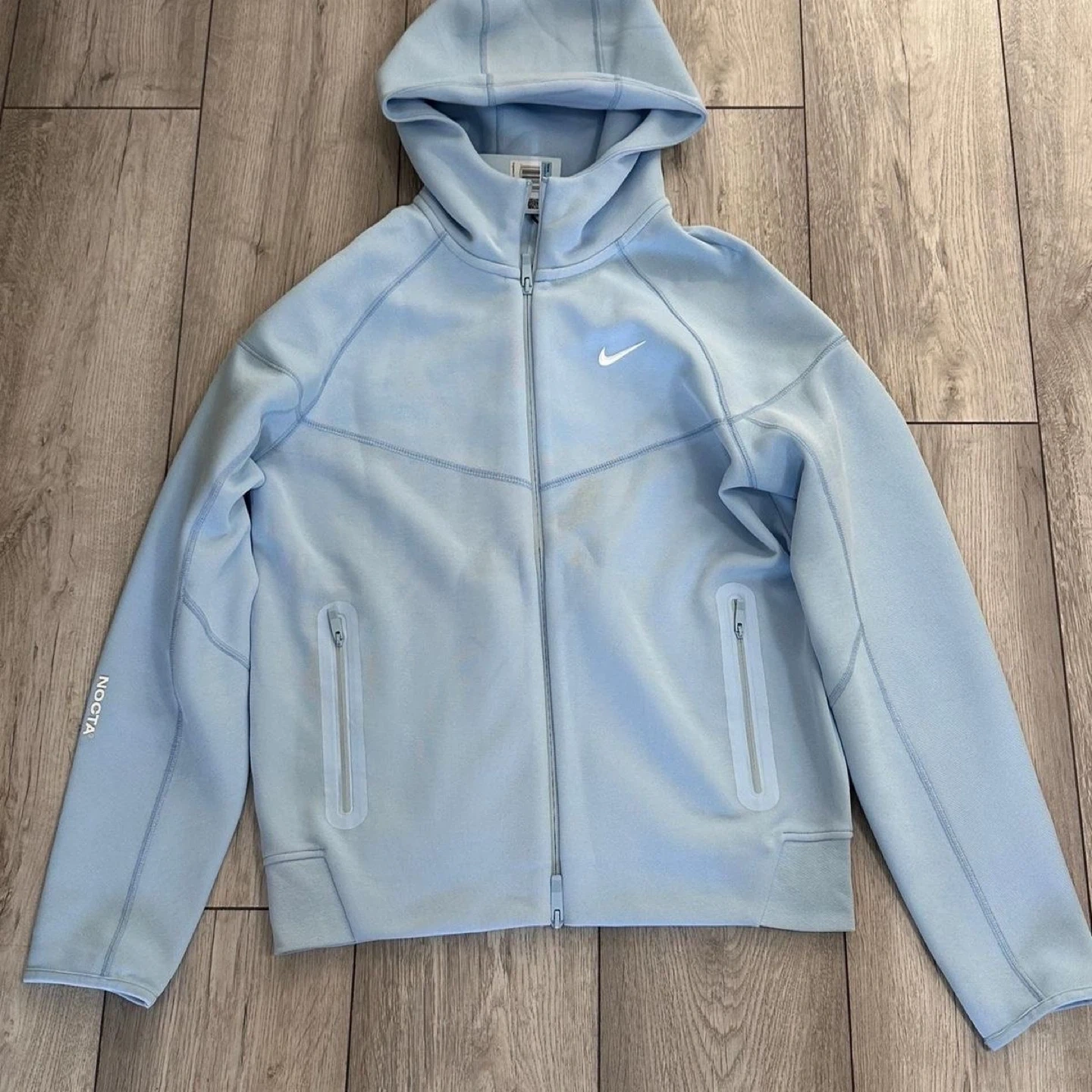 -715Selling a Nike x NOCTA tracksuit in a beautiful blue colour. The set includes both the hoodie and the pants. The hoodie features a full zip and the pants have a drawstring. Both pieces have the NOCTA logo on them. Perfect for casual wear or workouts!