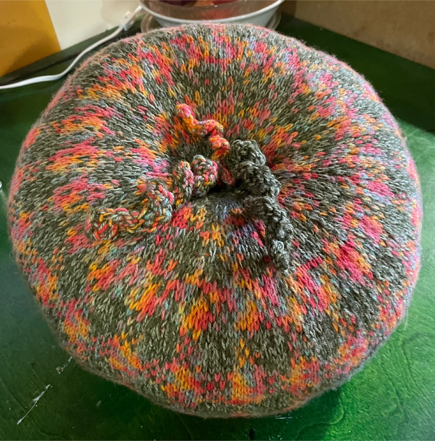 🥕Looking to add a cozy touch to your home decor? I'm selling this adorable handmade knitted pumpkin! It features a unique multi-coloured design with shades of green, pink, orange, and blue. Perfect for fall or any time of year