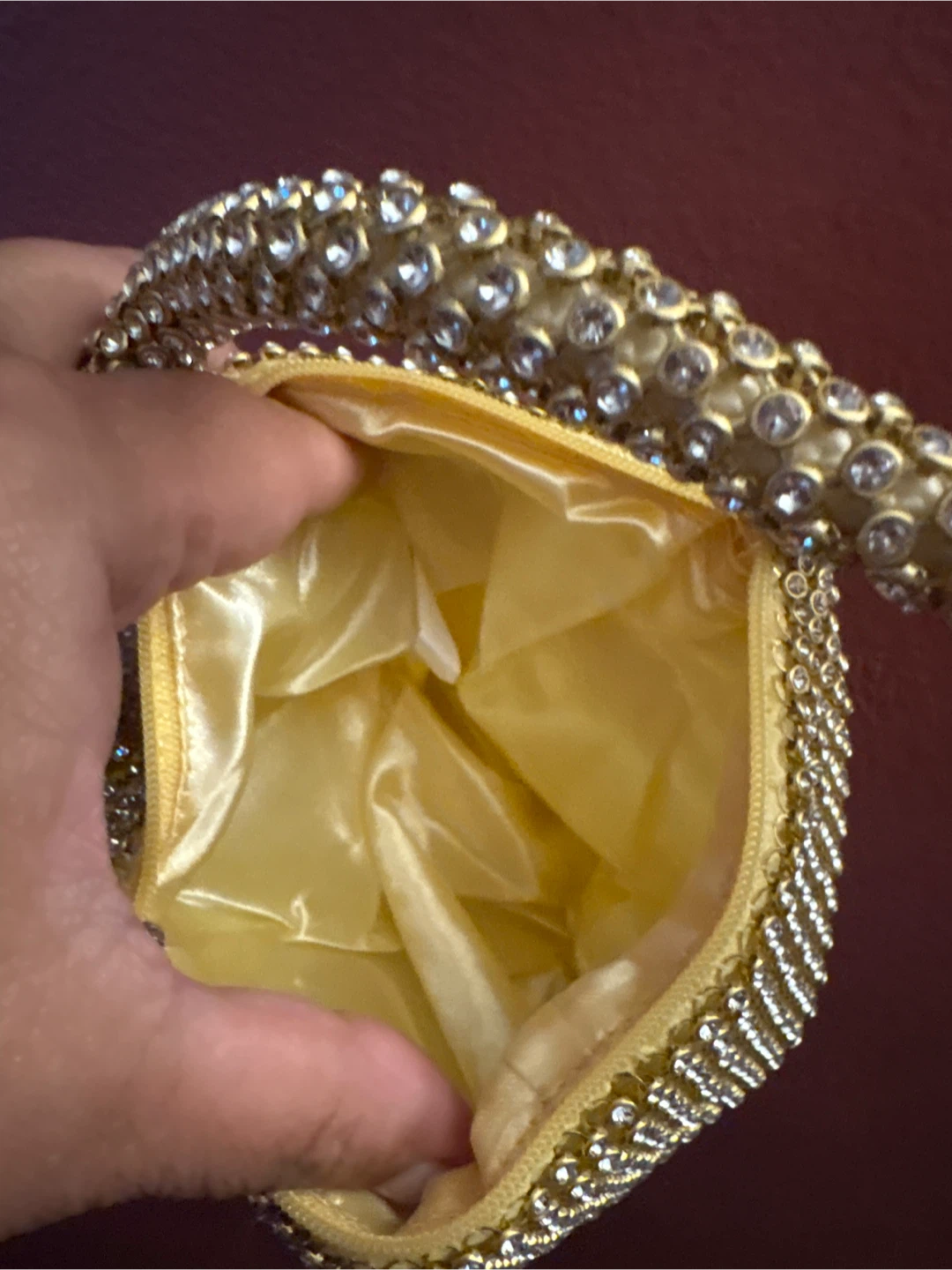 1 / 101 / 10Buy & SellNew Gold Rhinestone Beaded Evening BagNew Gold Rhinestone Beaded Evening Bag$10Selling a cute, gold beaded evening bag. It's perfect for a night out or a special occasion. The bag has a zipper closure and a gold interior. NEWConditionNewWHERE TO MEETCheck LocationView MapSELLERverifiedBellaWilliamsburg1000+976 reviews2 chatsΒ·3 favoritesΒ·39 viewsSEND CHAT TO SELLERHi Bella! Iβm interested in your listing.Hi Bella! Iβm interested in your listing.Get the Karrot app to chatSign In to chat