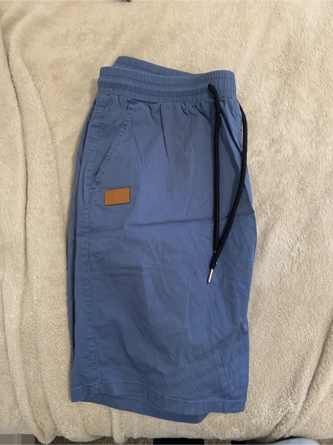 Selling a pair of blue shorts with a drawstring! They appear to be in great condition and have a casual, comfortable look. Perfect for everyday wear or lounging around