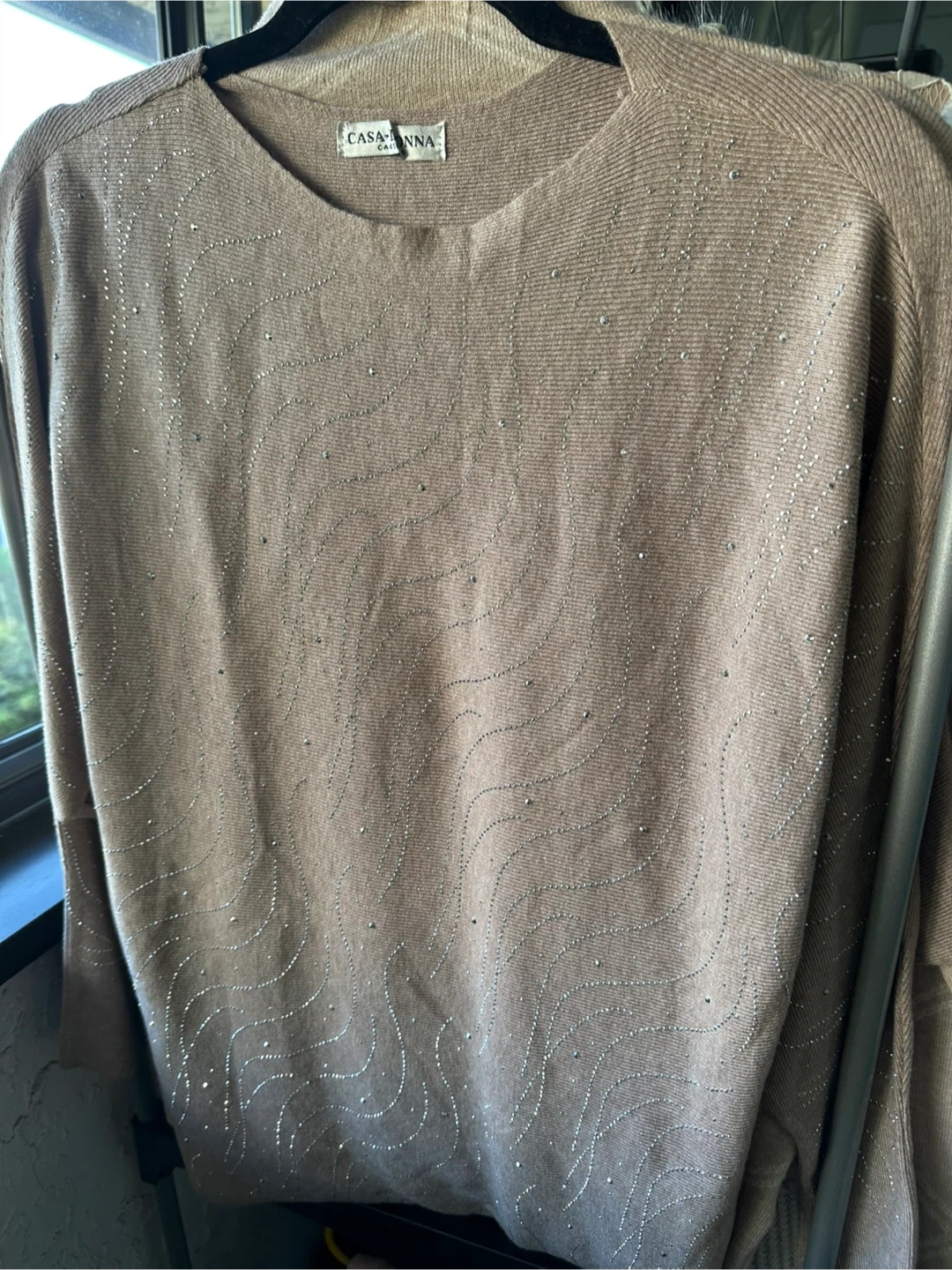 Cozy Casa sweater in a lovely off white colour. Features delicate embellishments for a touch of sparkle. It's in great condition and ready for a new home!