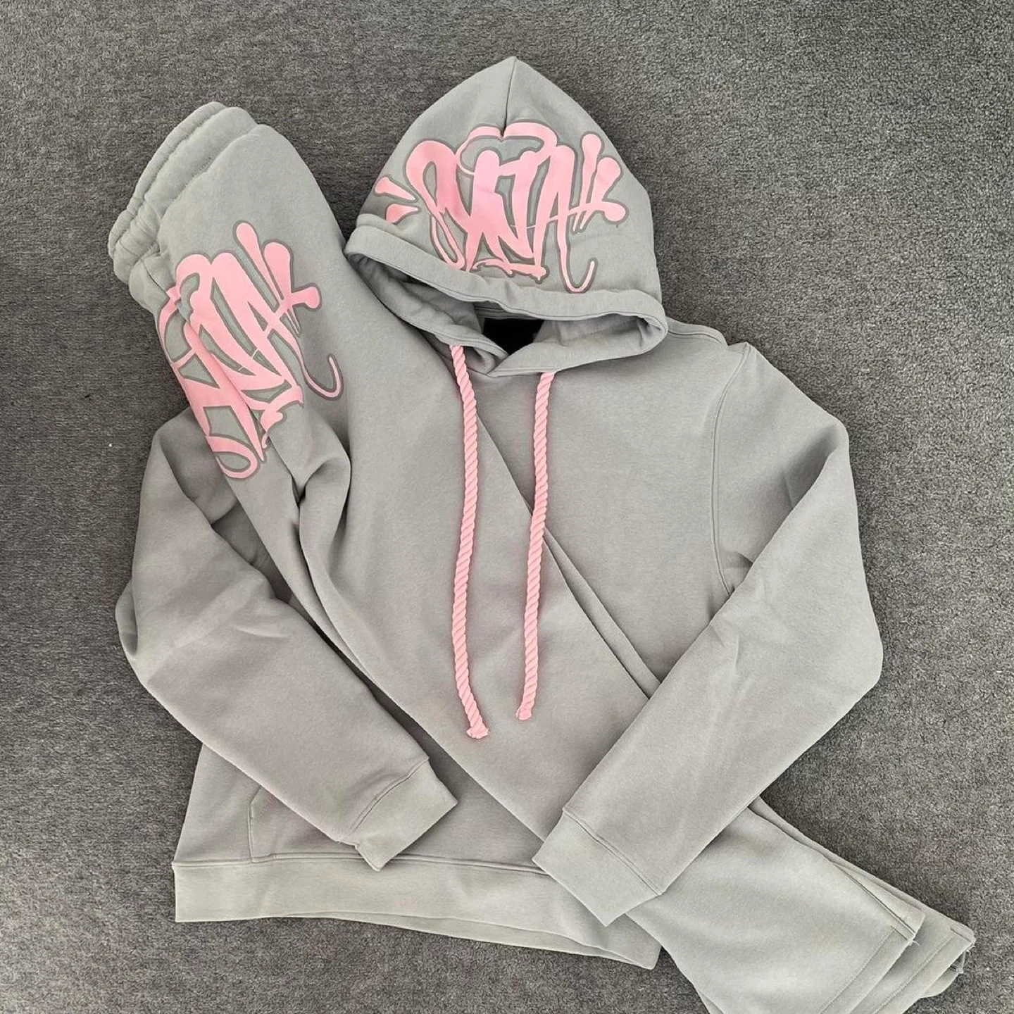 -715Selling a Syna World grey hoodie and sweatpants set with pink accents. Perfect for lounging around the house or running errands!