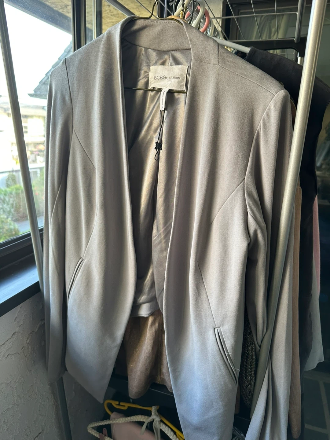 Selling a BCBG Generation blazer in a stylish grey colour. It's in great condition and ready to add a touch of sophistication to your wardrobe!