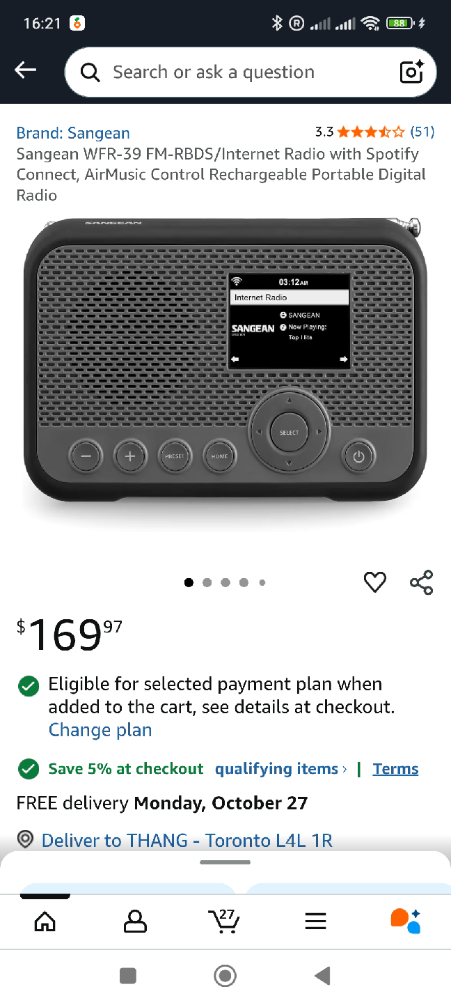 Selling a brand new Sangean WFR-39 FM-RBDS/Internet Radio! It's still in its original box and has never been used. This portable digital radio also features AirMusic Control and Spotify Connect. Originally bought for $169.97, it's a great deal for a high-quality radio. Comes with all original components and accessories