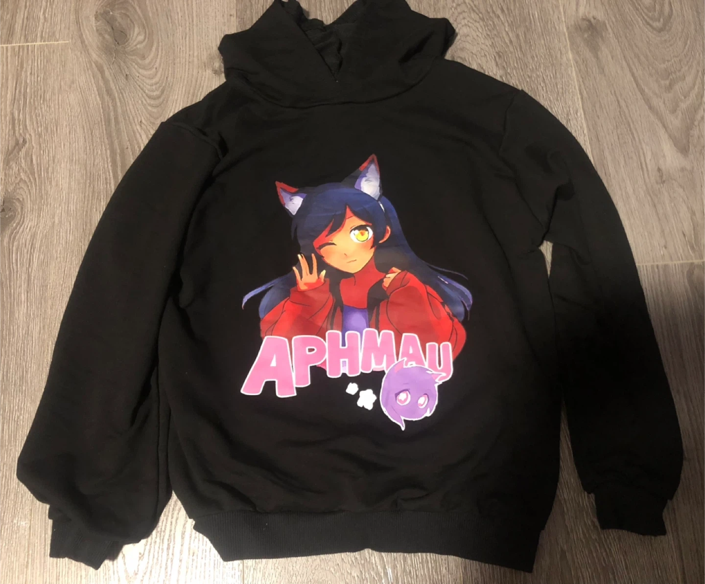Selling a black hoodie featuring the Aphmau character. Perfect for fans of Aphmau or anyone looking for a unique hoodie