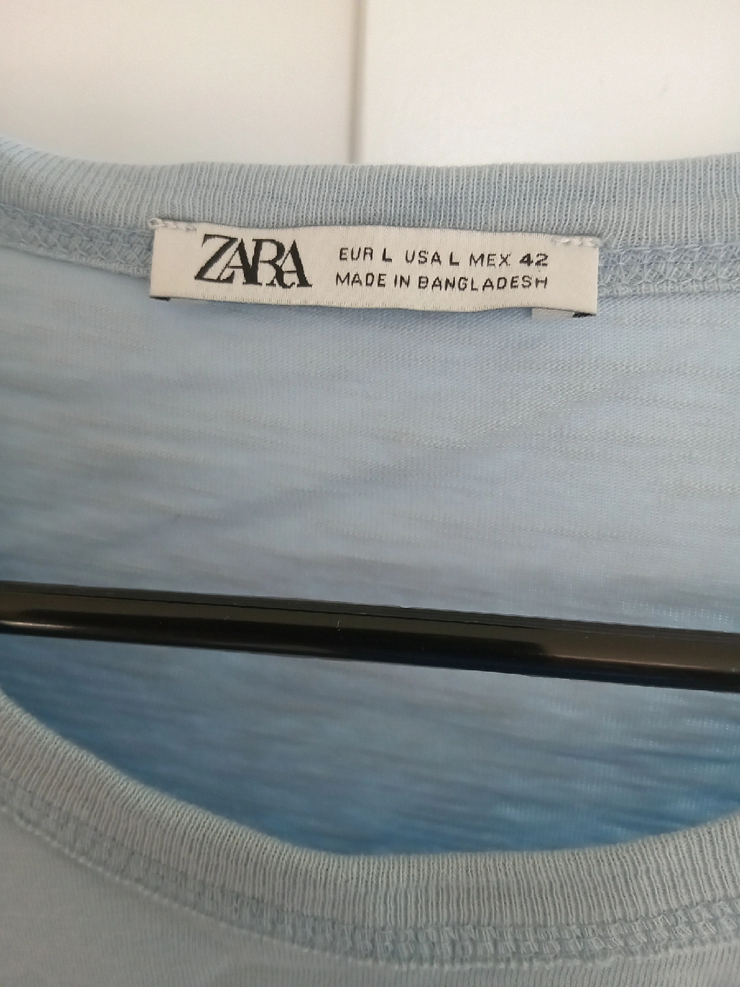 Light blue Zara T-shirt in size L. It's in great condition and ready for a new home! Perfect for casual wear or layering