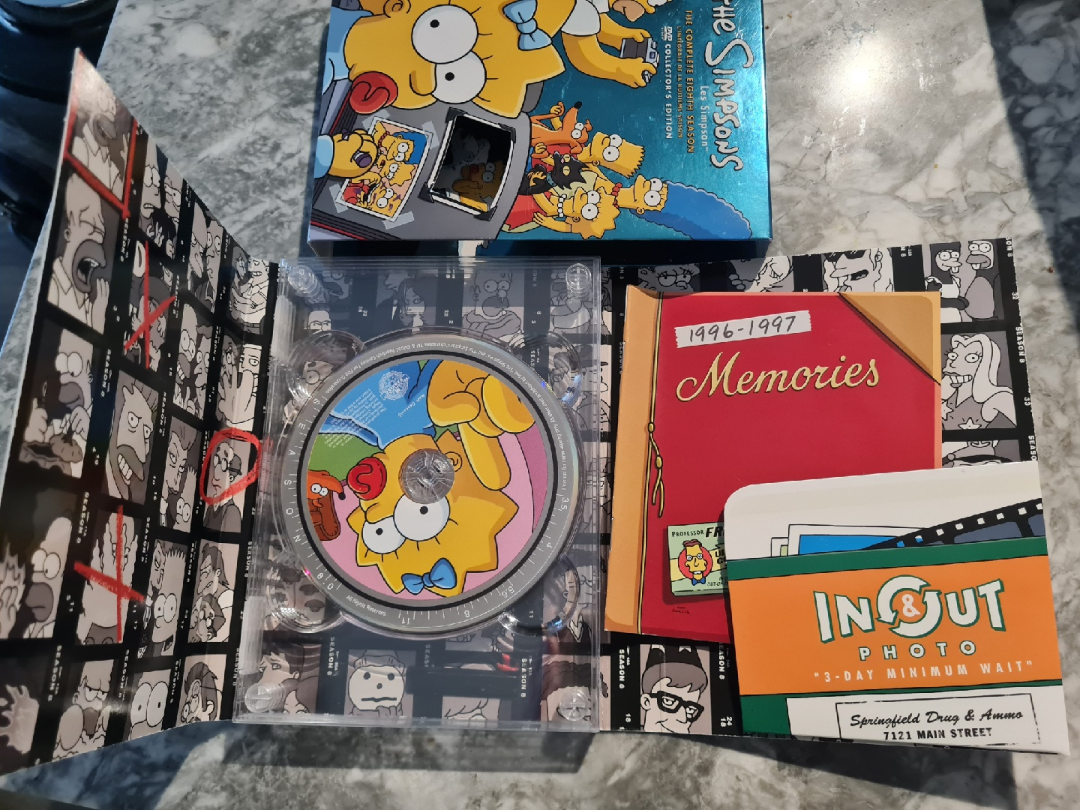 Selling The Simpsons: The Complete Eighth Season DVD Collector's Edition set! Includes some fun extras like a 'Memories' accommodation booklet and 'In & Out Photo' insert