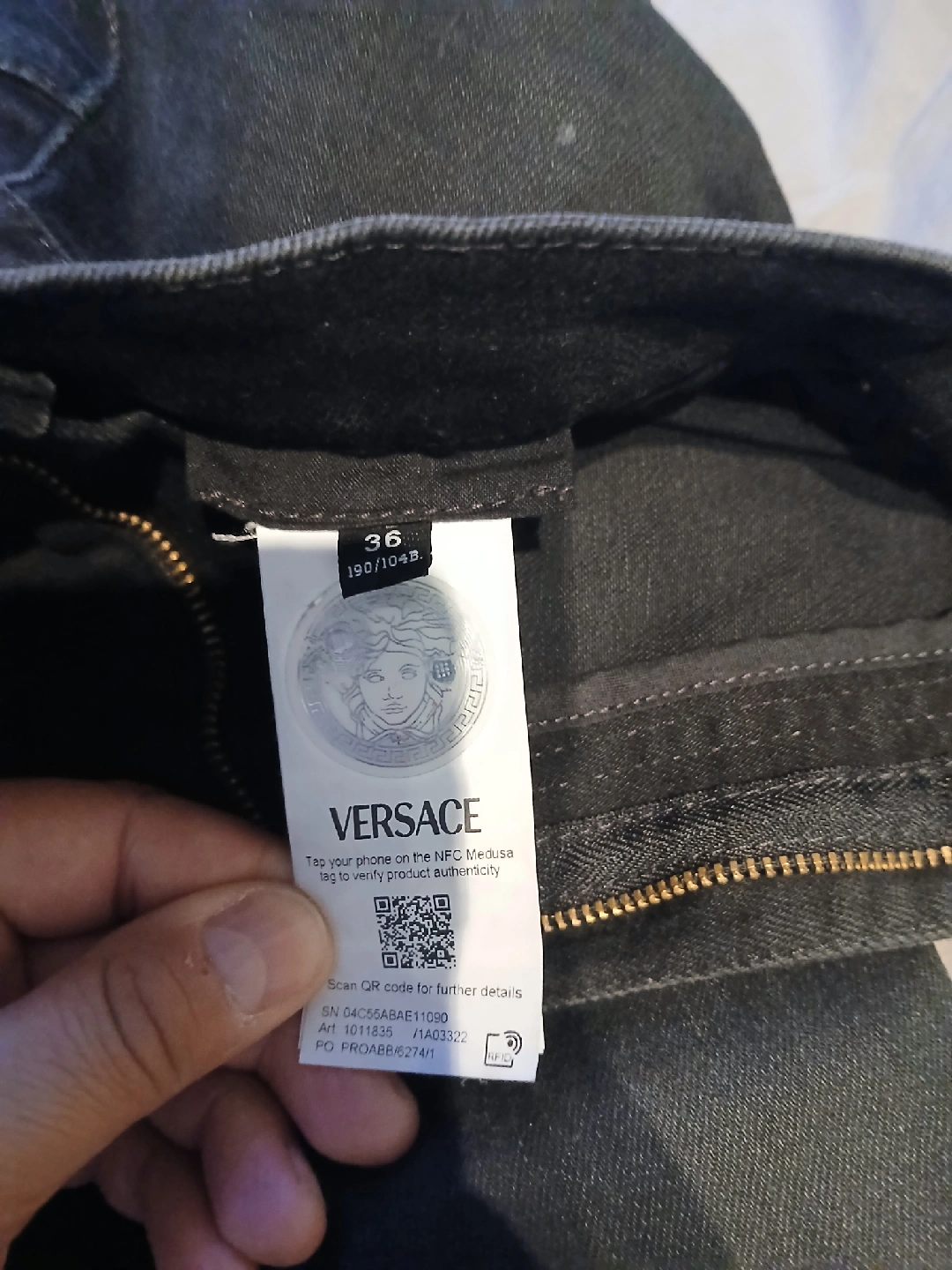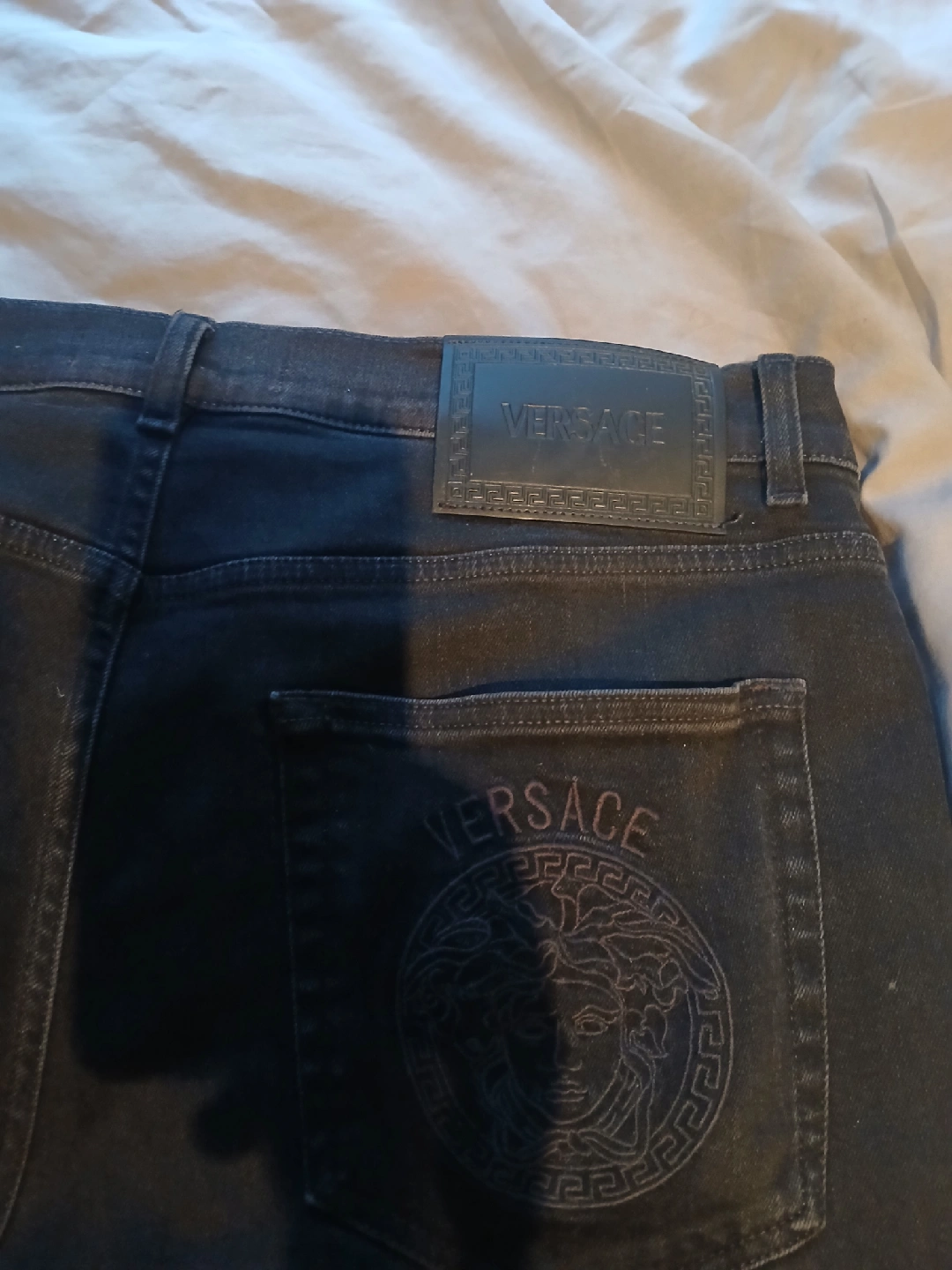 80Selling a pair of Versace jeans in black, size 36. These jeans feature the Versace logo on the back pocket and waistband. They're in great condition and ready for a new home!