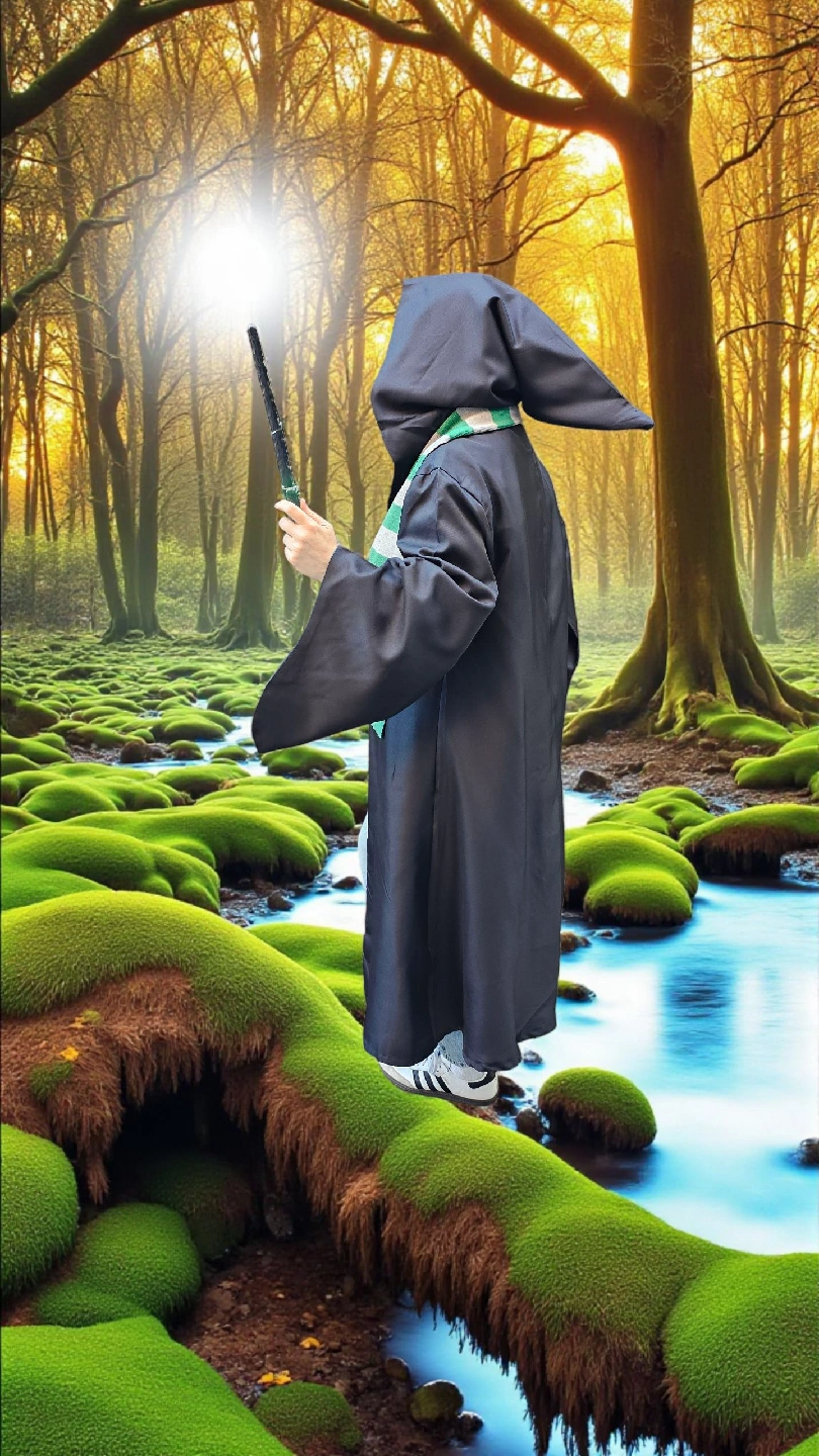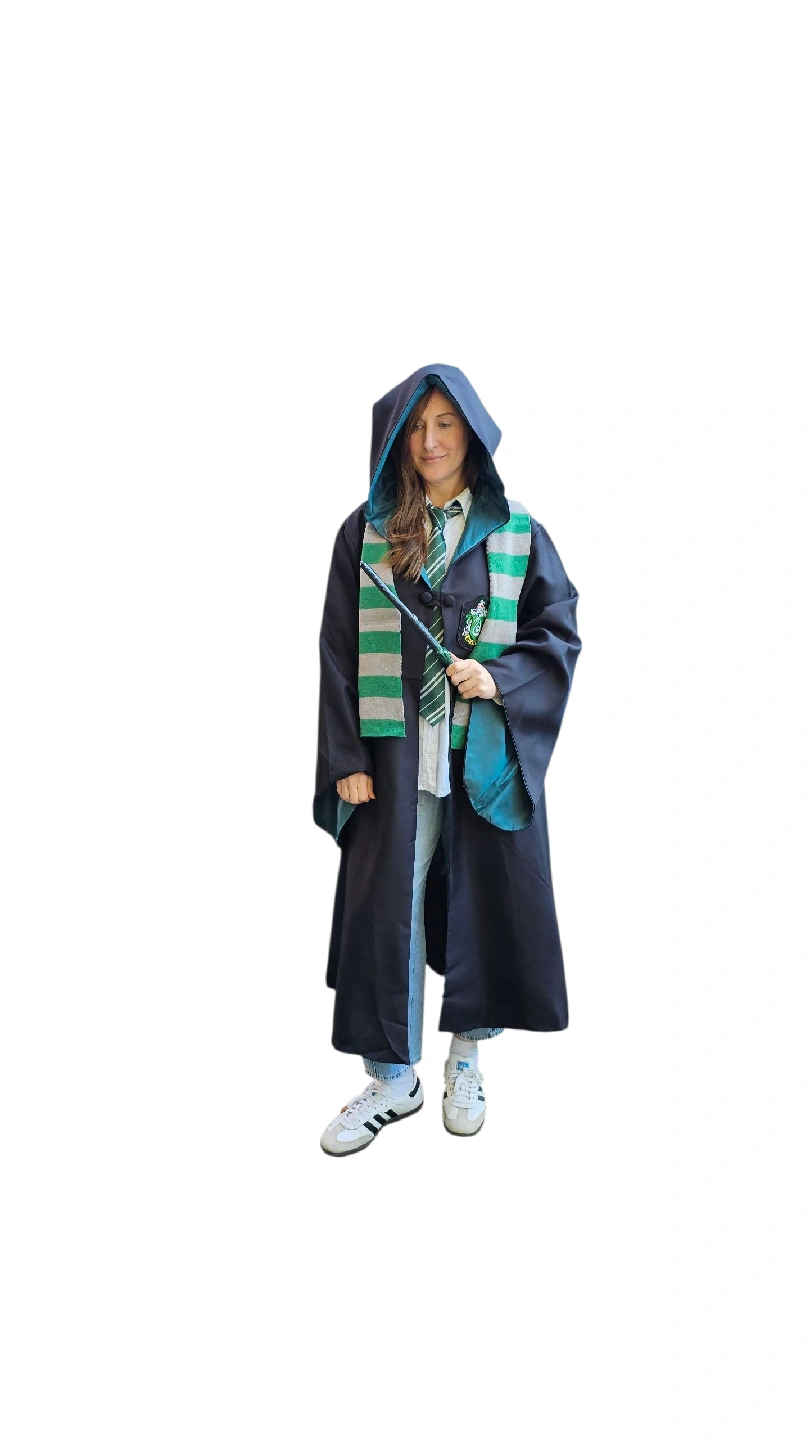 Robe with Slytherin crest, hood and inside chest pocket for the wand.