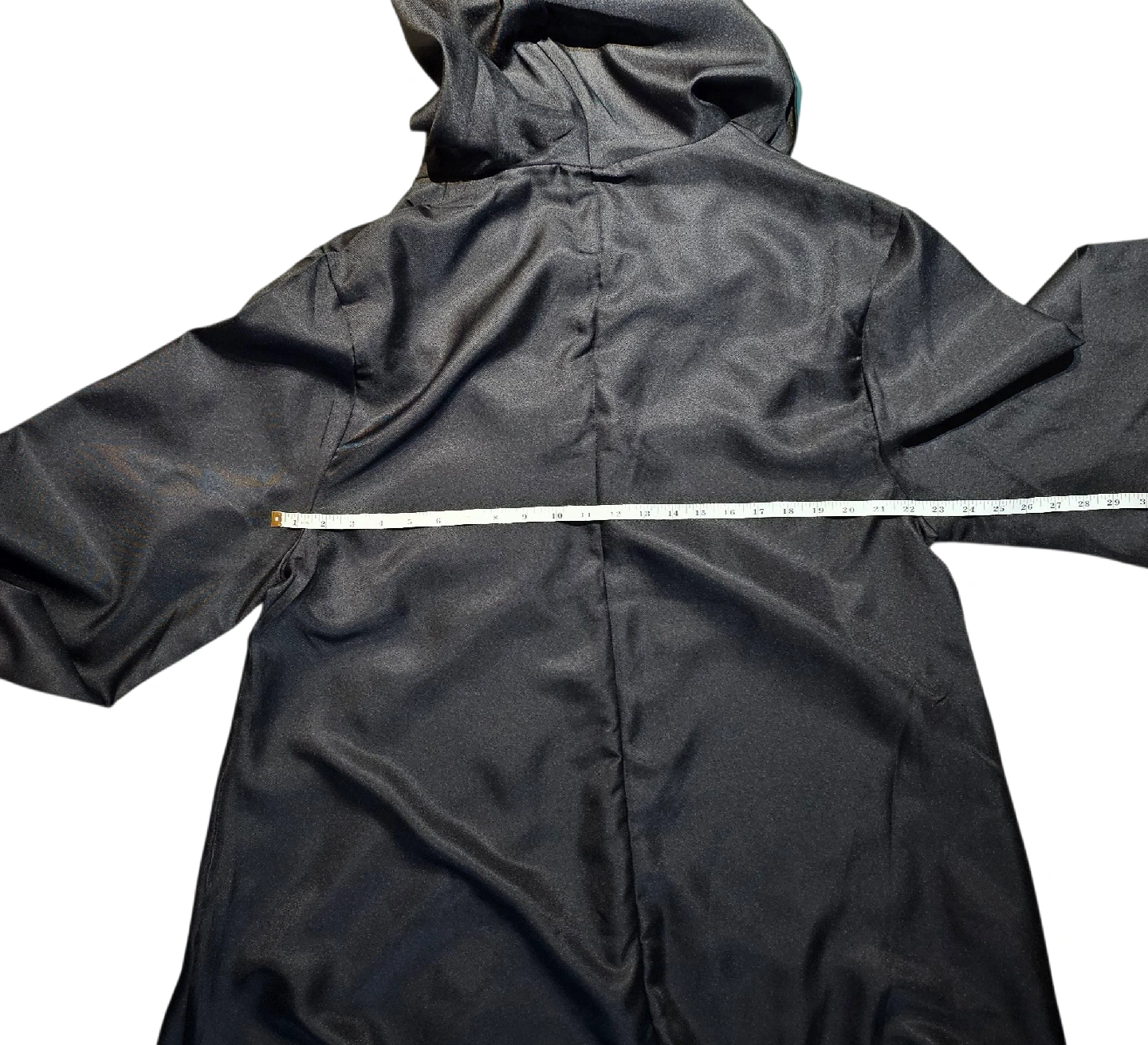 The robe is black with a green lining, and it features the Slytherin crest which is removable. Perfect for Halloween or any Harry Potter fan!