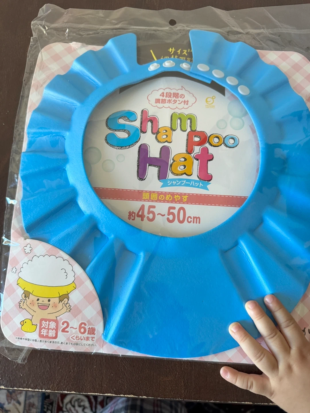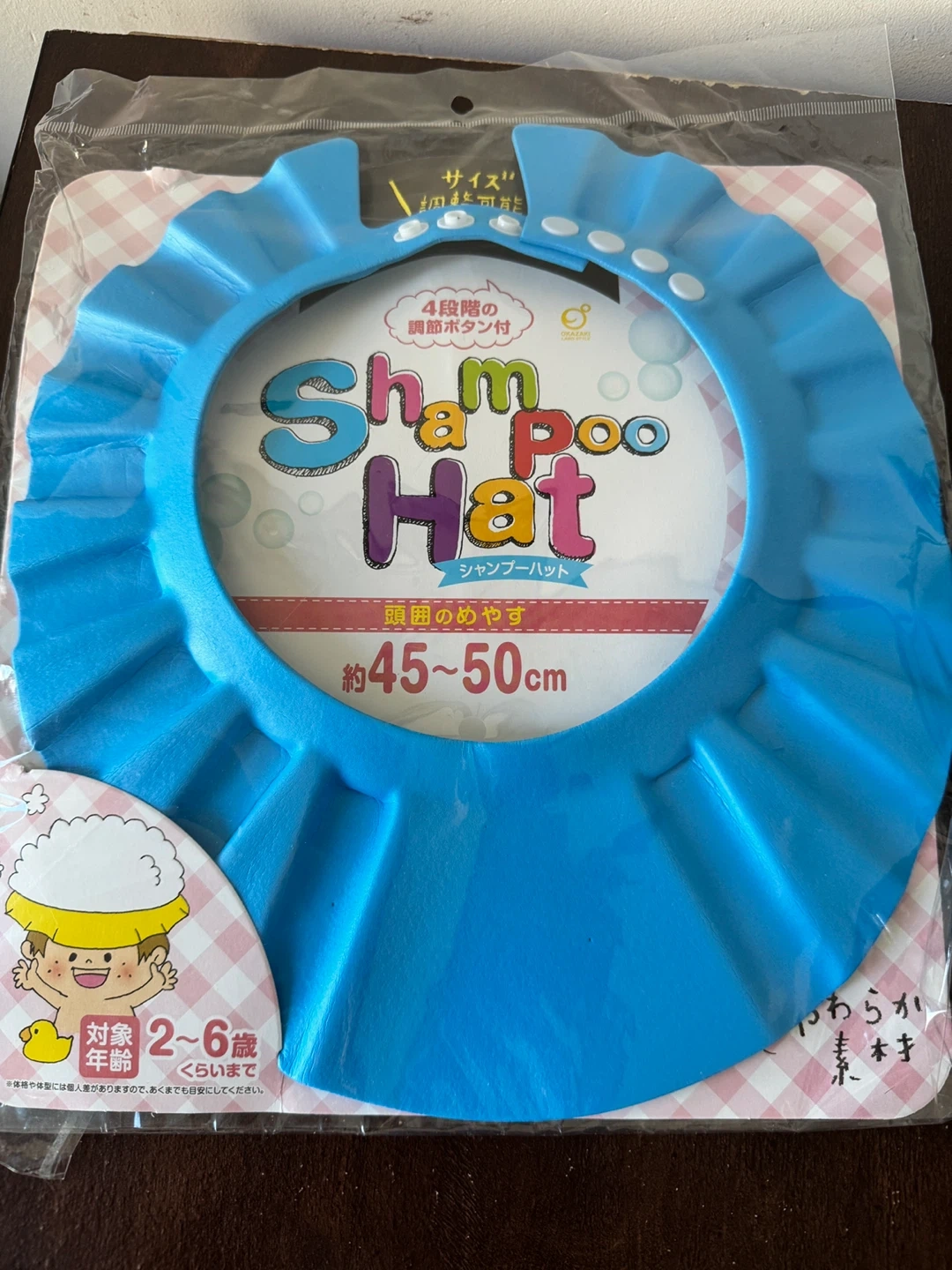 105Keep bath time tear-free with this shampoo hat! It's designed to protect your little one's eyes from soap and water. Recommended for ages 2 to 6 years, and sized for head circumferences of approximately 45-50cm
