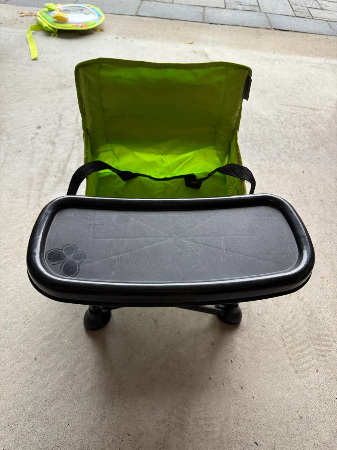 Selling a Summer Infant Pop and Sit portable booster seat in green. It's gently used and comes with a carrying bag, making it easy to take on the go. Perfect for travel or dining out with your little one!