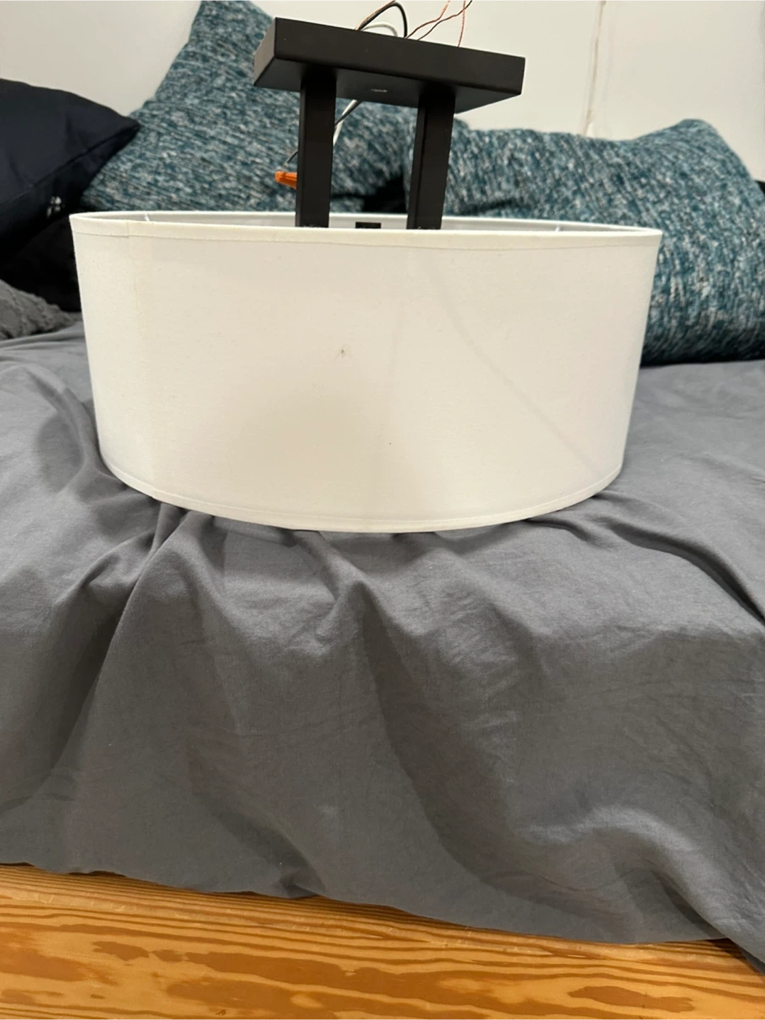 Selling a modern ceiling light with drum lamp shade. It's in great shape and would look lovely in any room. The shade is white and has a clean, simple design. Perfect for adding a touch of elegance to your lighting!