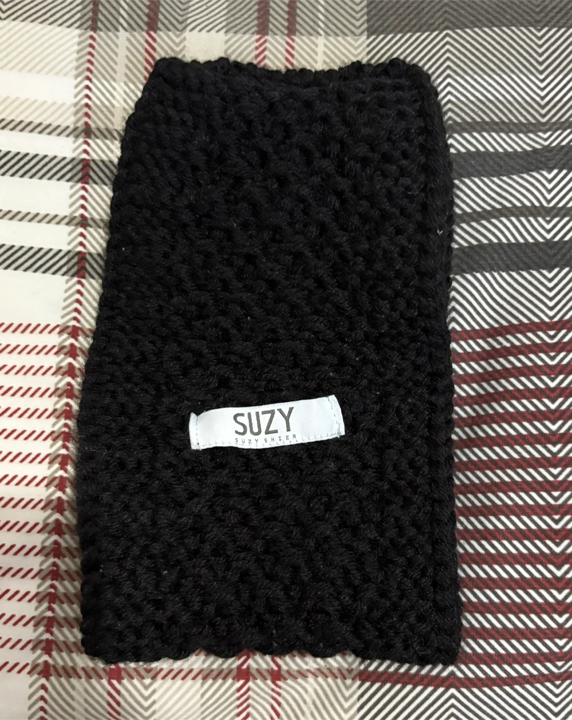 656Selling a cozy black knit headband from Suzy Shier. It's perfect for keeping your ears warm during the colder months. The material is soft and comfortable, great for everyday wear! Barely used.