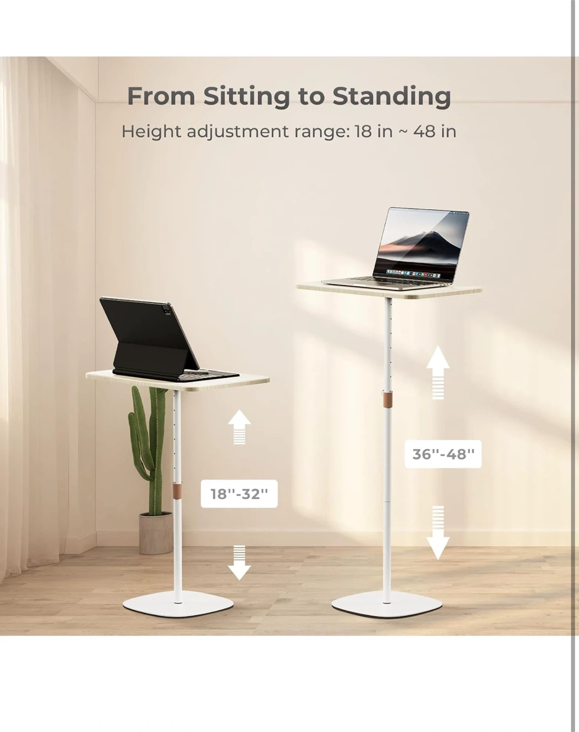 This adjustable height standing desk is perfect for working from home or enjoying a relaxing time. The height can be adjusted from 18 to 48 inches. It has an excellent weight capacity of 33lbs. Enjoy the flexibility of sitting or standing with this versatile desk!
