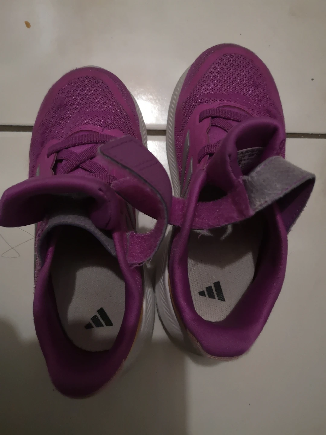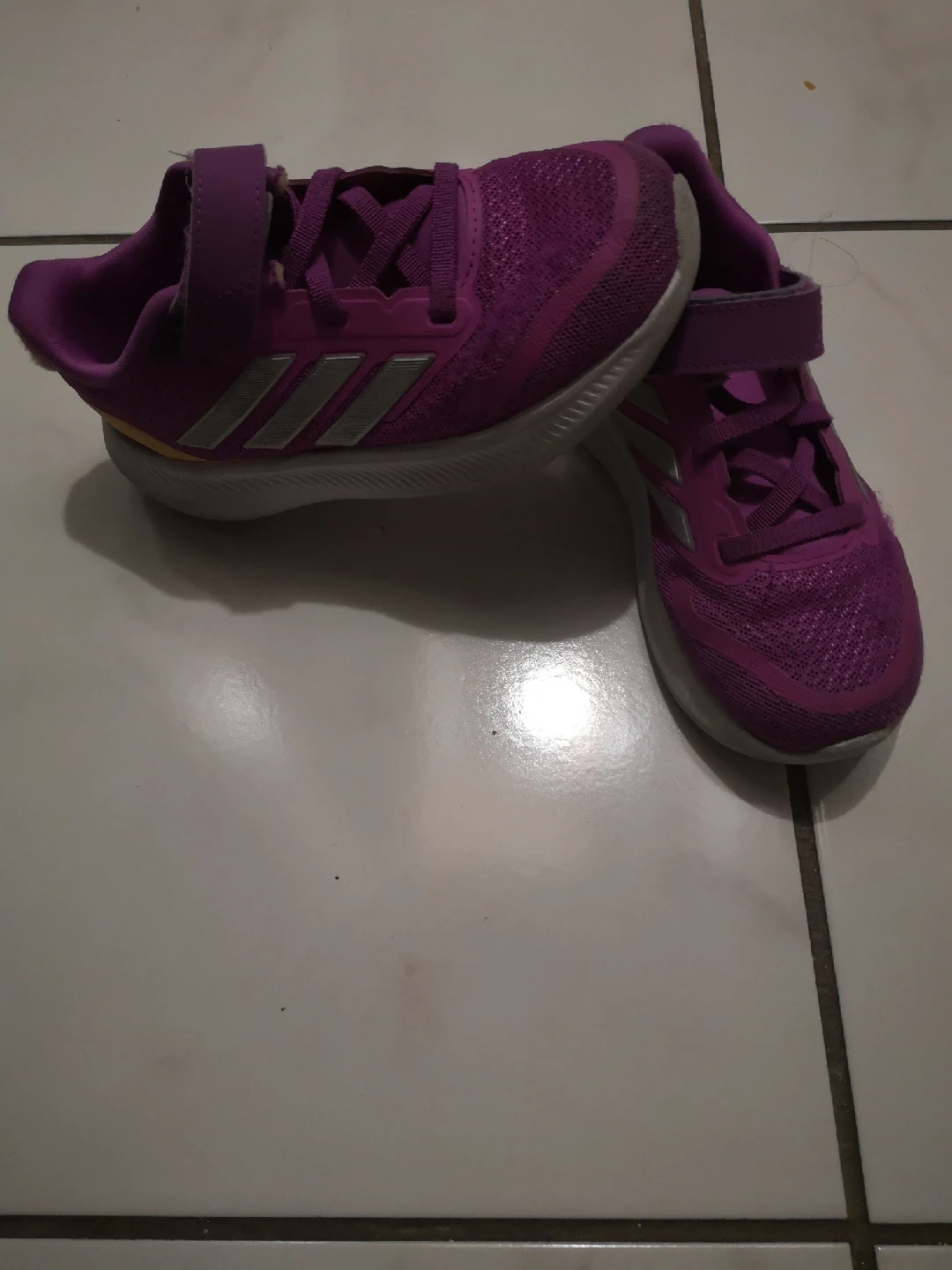 Selling a pair of Adidas kids' running shoes in size 9.5K. They are in good condition and ready for a new owner! Perfect for active kids who love to run and play.