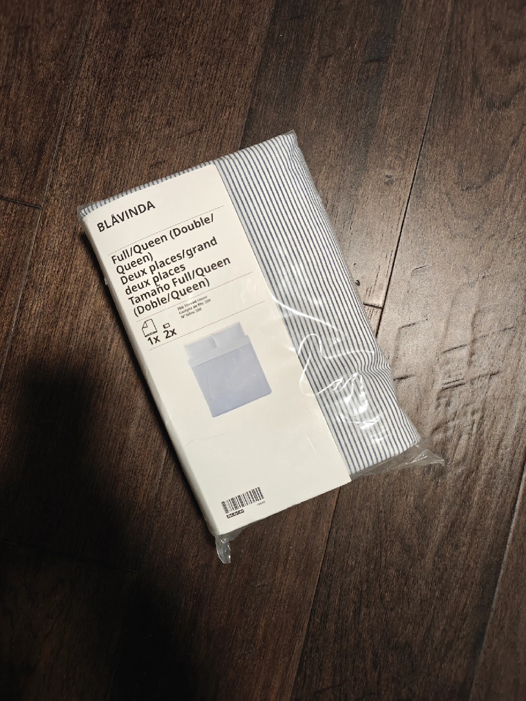 New and unopened IKEA BLÅVINDA duvet cover set in full/queen size. The set includes one duvet cover (86x86 inches) and two pillowcases (20x30 inches).