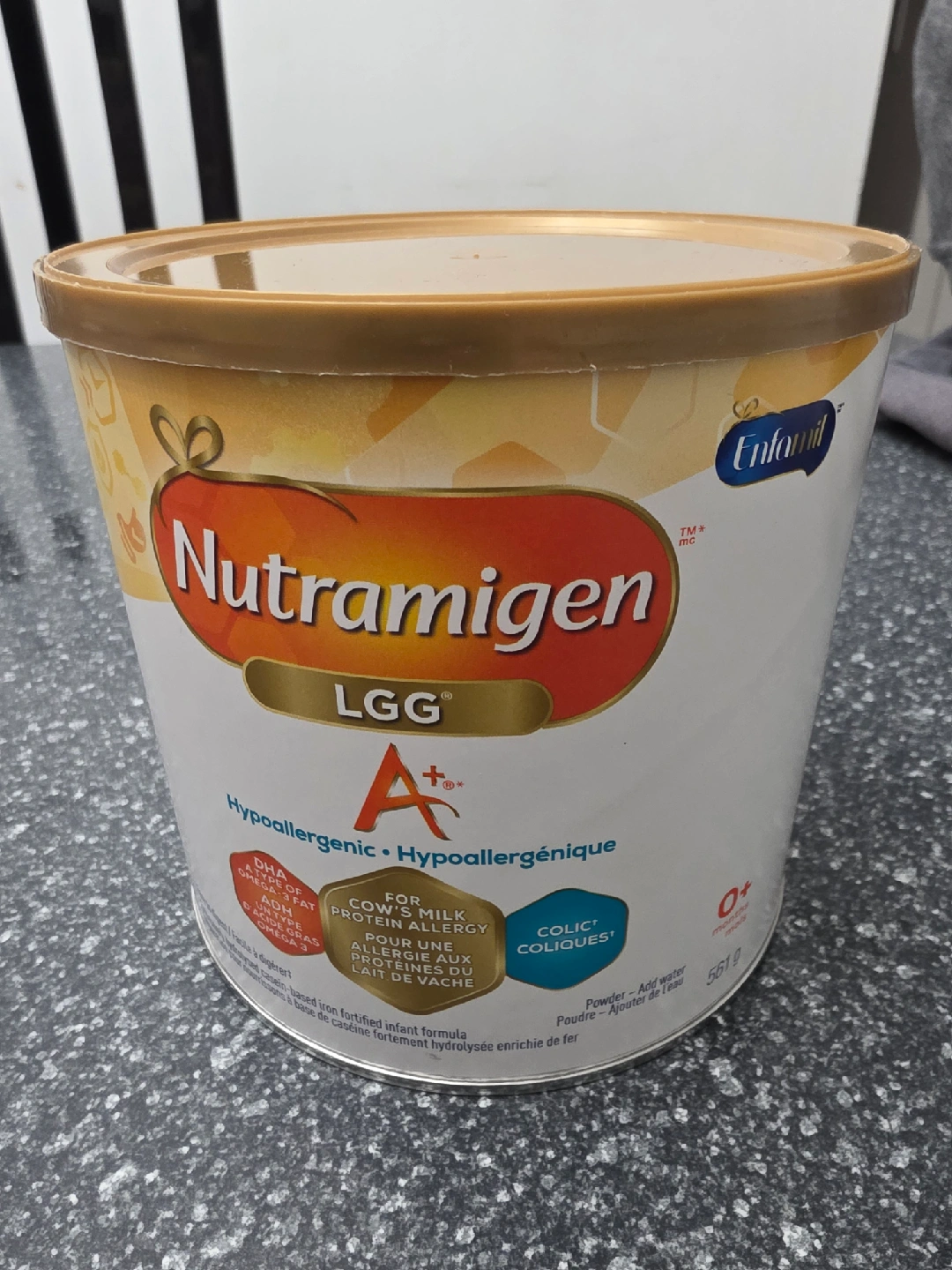 Selling a can of Enfamil Nutramigen A+ infant formula. It's hypoallergenic and suitable for babies 0+. The expiration date is 2026 December 01. I have 3. $12.00 each.
