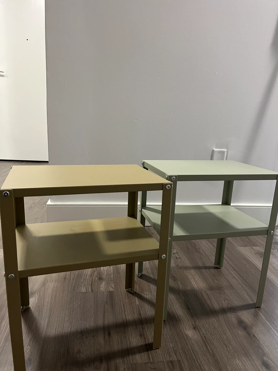 Selling a set of two IKEA KNARREVIK nightstands! One is a lovely beige colour, and the other is a soft green. They're in great shape and ready for a new home.