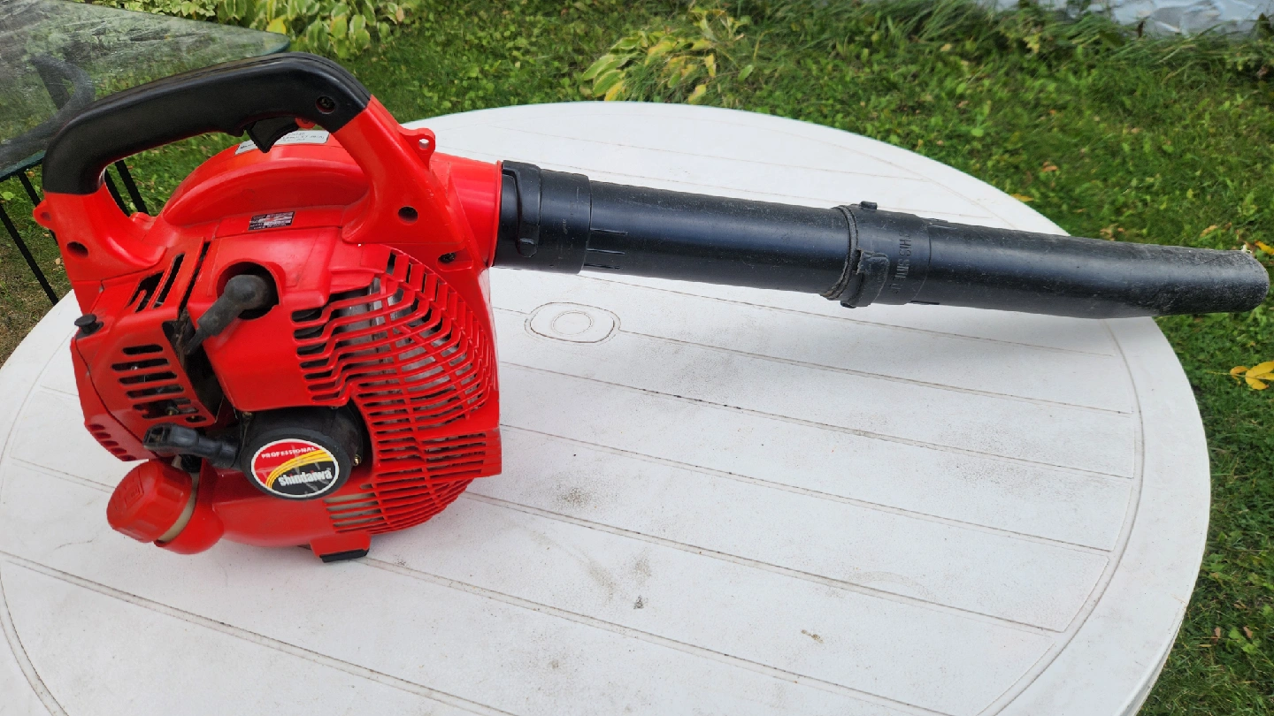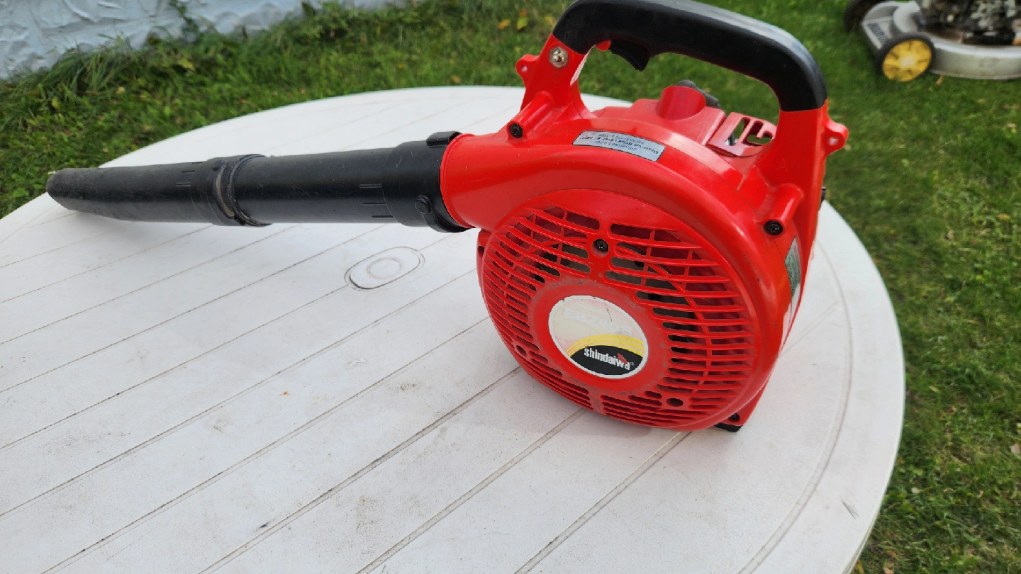 Selling a Shindaiwa leaf blower. It's red and in good working condition. It has a black nozzle and a black handle.