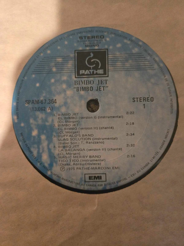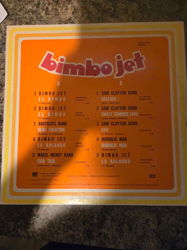 21Relive the groovy vibes with this Bimbo Jet vinyl record! Though it has been enjoyed, this vintage record is in fair condition, ready to spin some classic tunes. It includes some iconic tracks from the 70s. With its iconic cover art, it's sure to catch the eye! Additional details: * Artist: Bimbo Jet * Format: Vinyl Record * Record Size: 12-inch * Speed: 33 RPM If the ad's up, it's up for grabs!