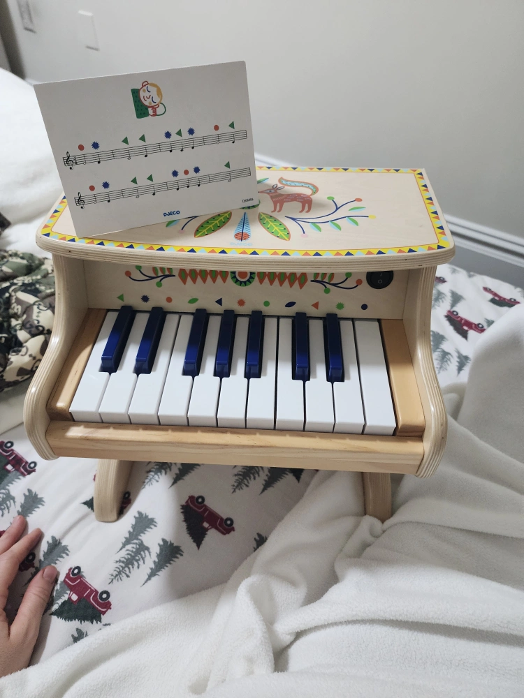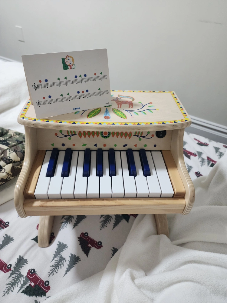 Selling a cute Djeco wooden piano! It's in great shape and perfect for little musicians. The piano comes with a song card to help get them started