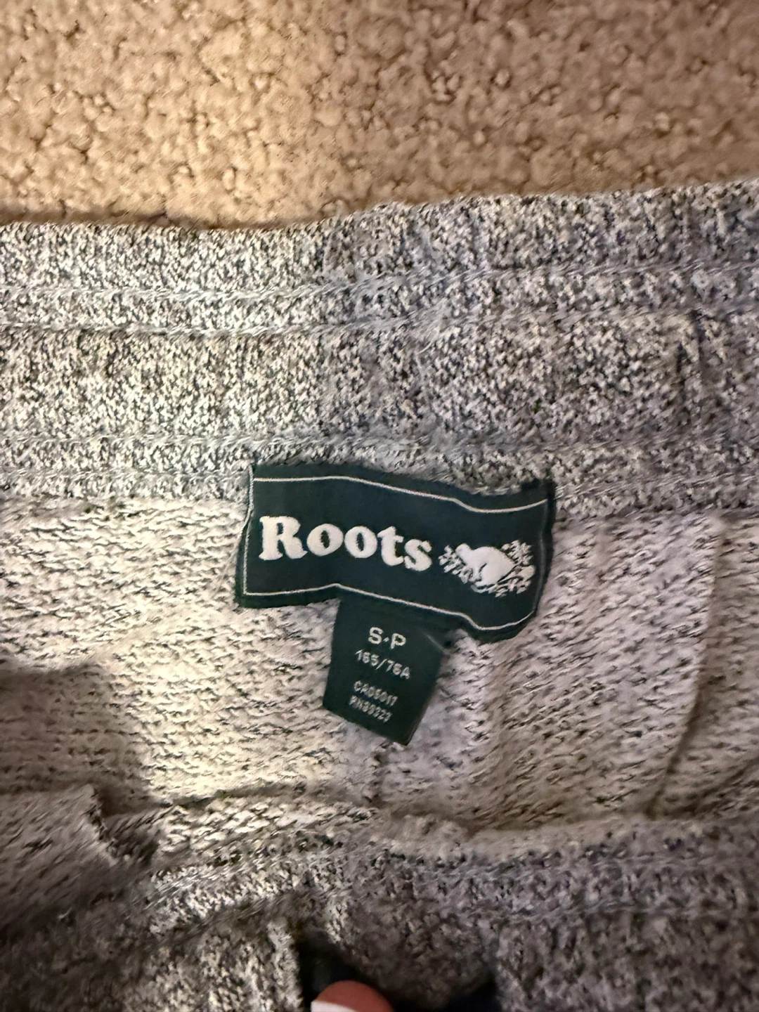 65Comfy Roots sweatpants in a salt and pepper colour! They're a size small.