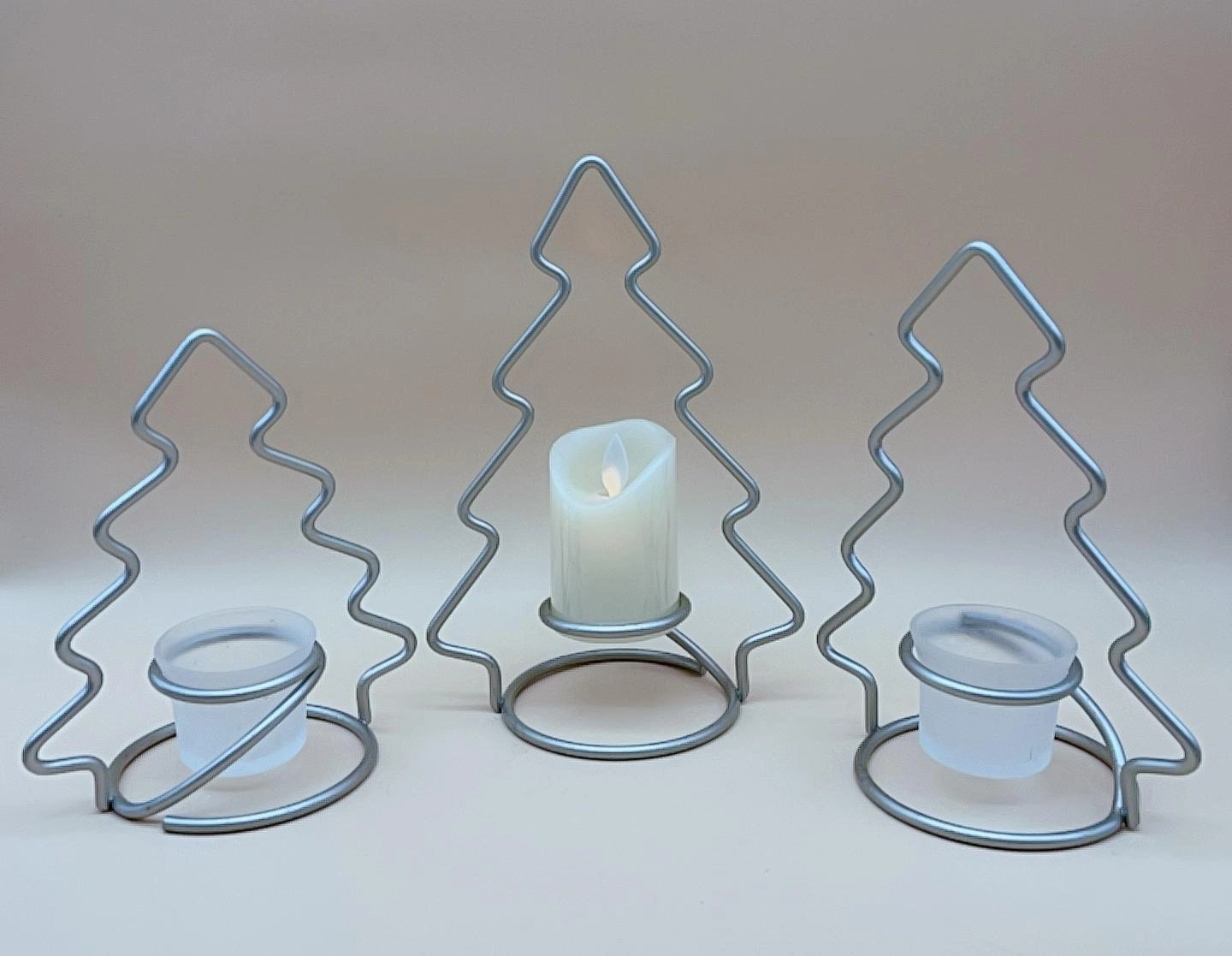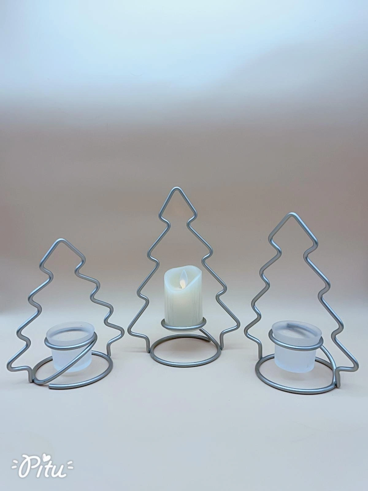 54Stylish candle holder with metal wire Shaped like Christmas trees, holding a white candle for decorative! 🎄