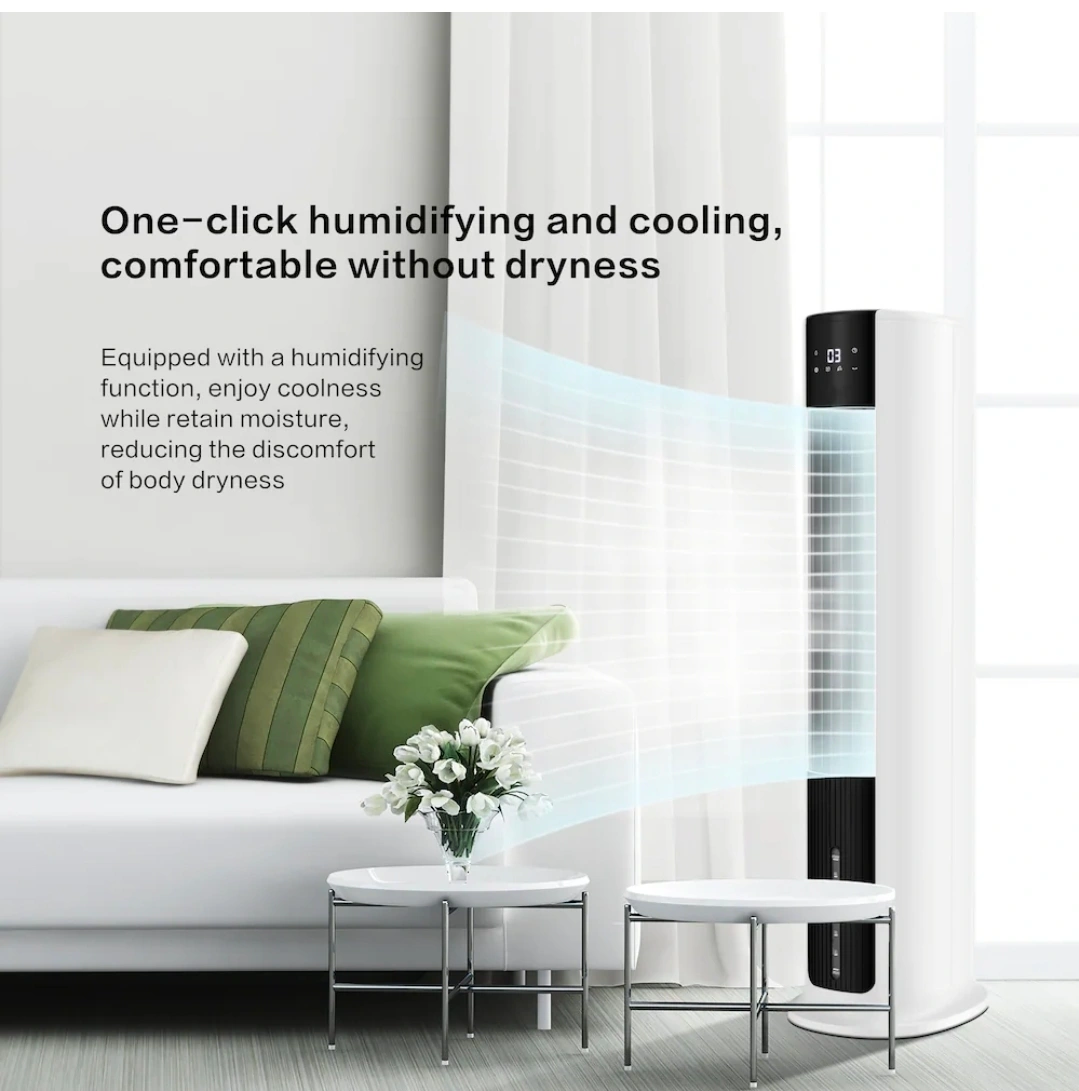 34This Vissani 3-in-1 portable evaporative air cooler is perfect for cooling down your space! It functions as a tower fan and humidifier as well. It features: - 60° wide-angle air supply - 3-speed wind adjustment - One-click humidification - 7L large water tank - 10-hour timer - Water shortage protection Integrated with multiple functions, it is a good helper for cooling