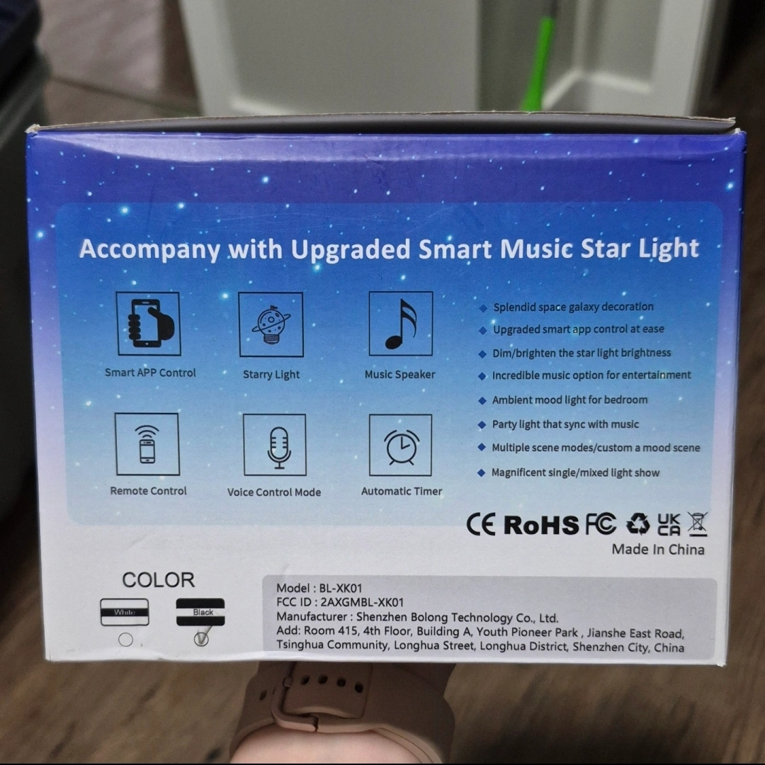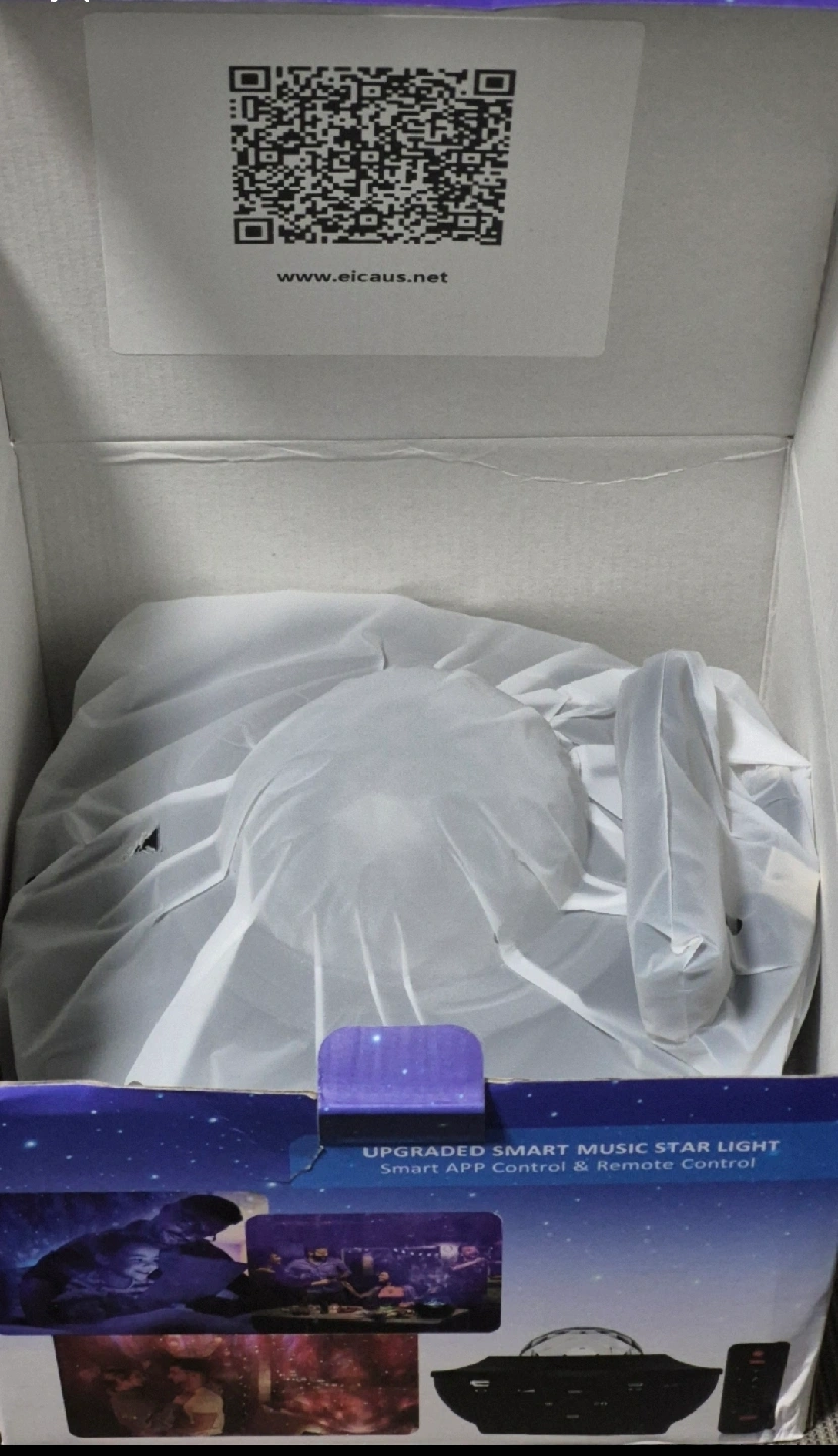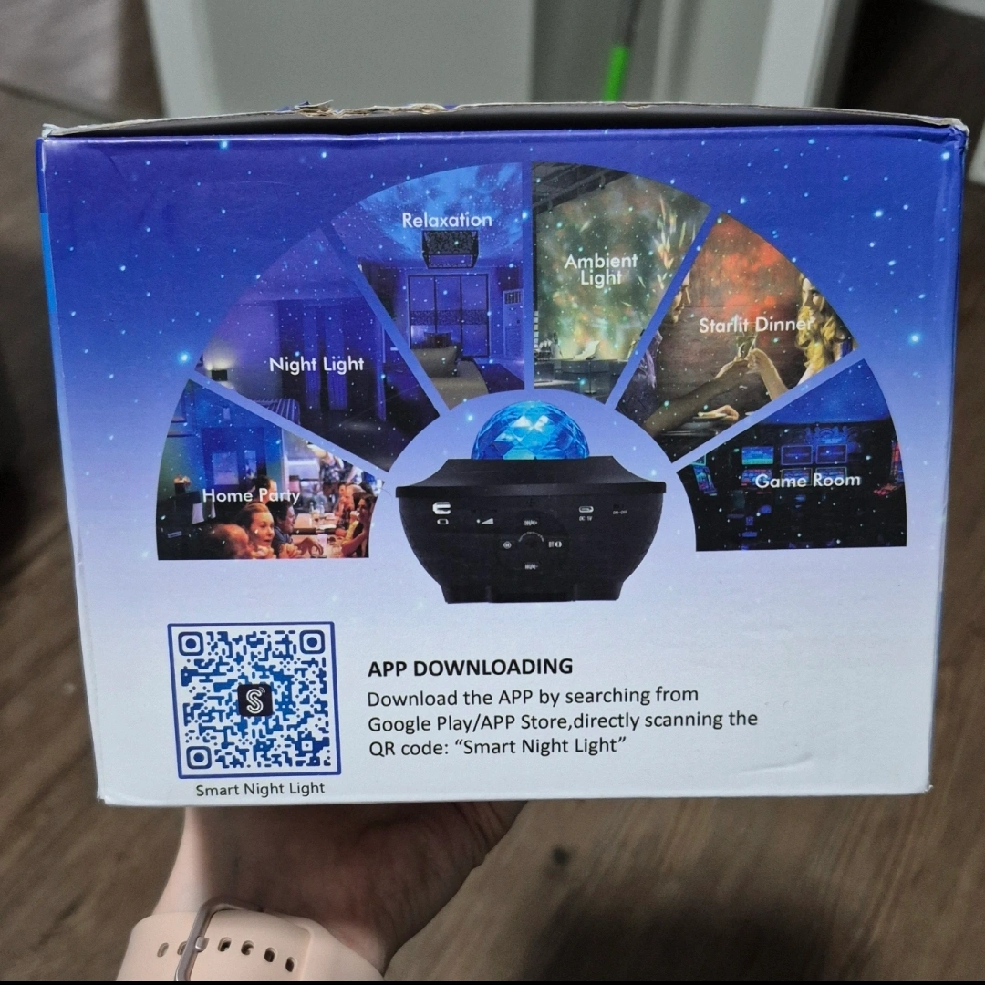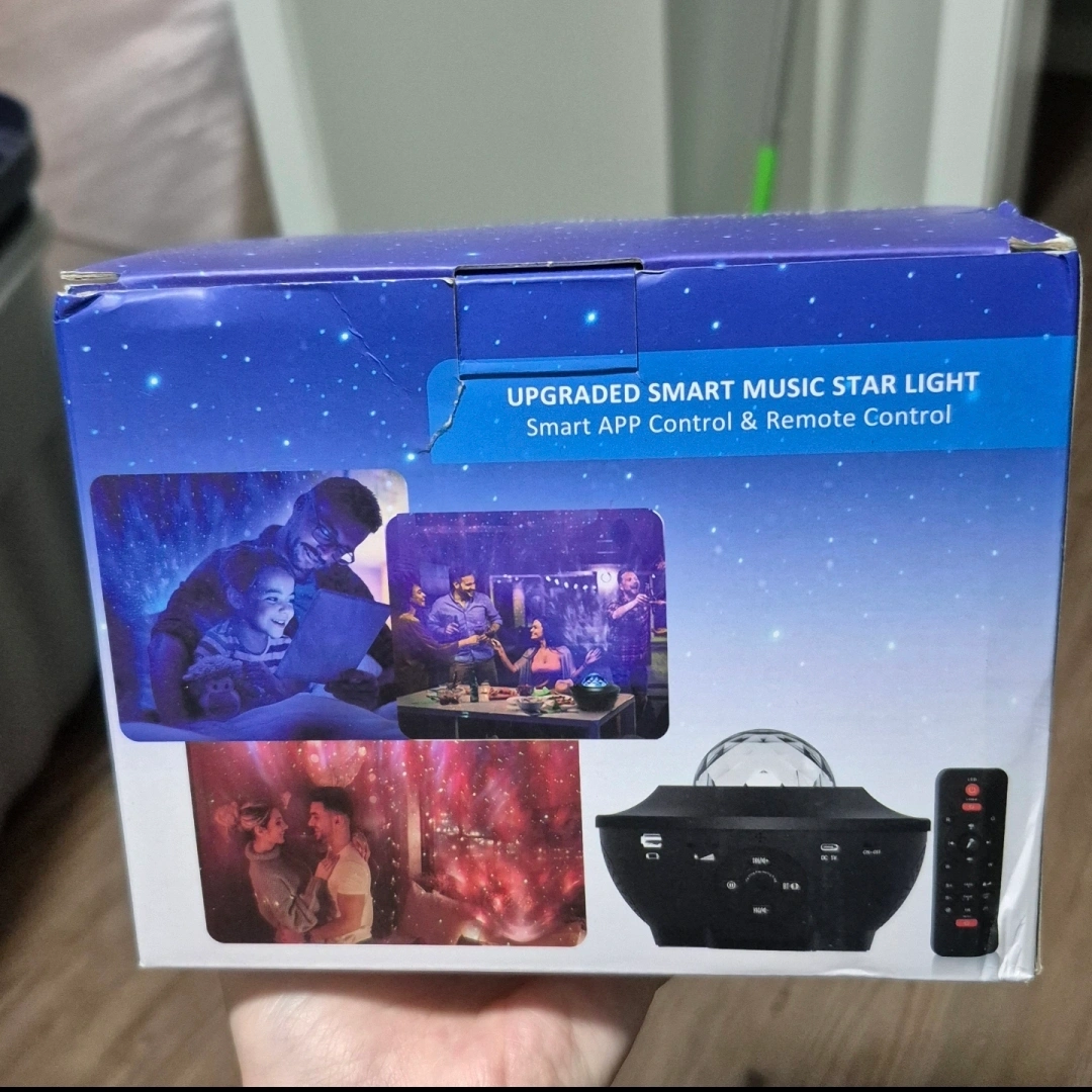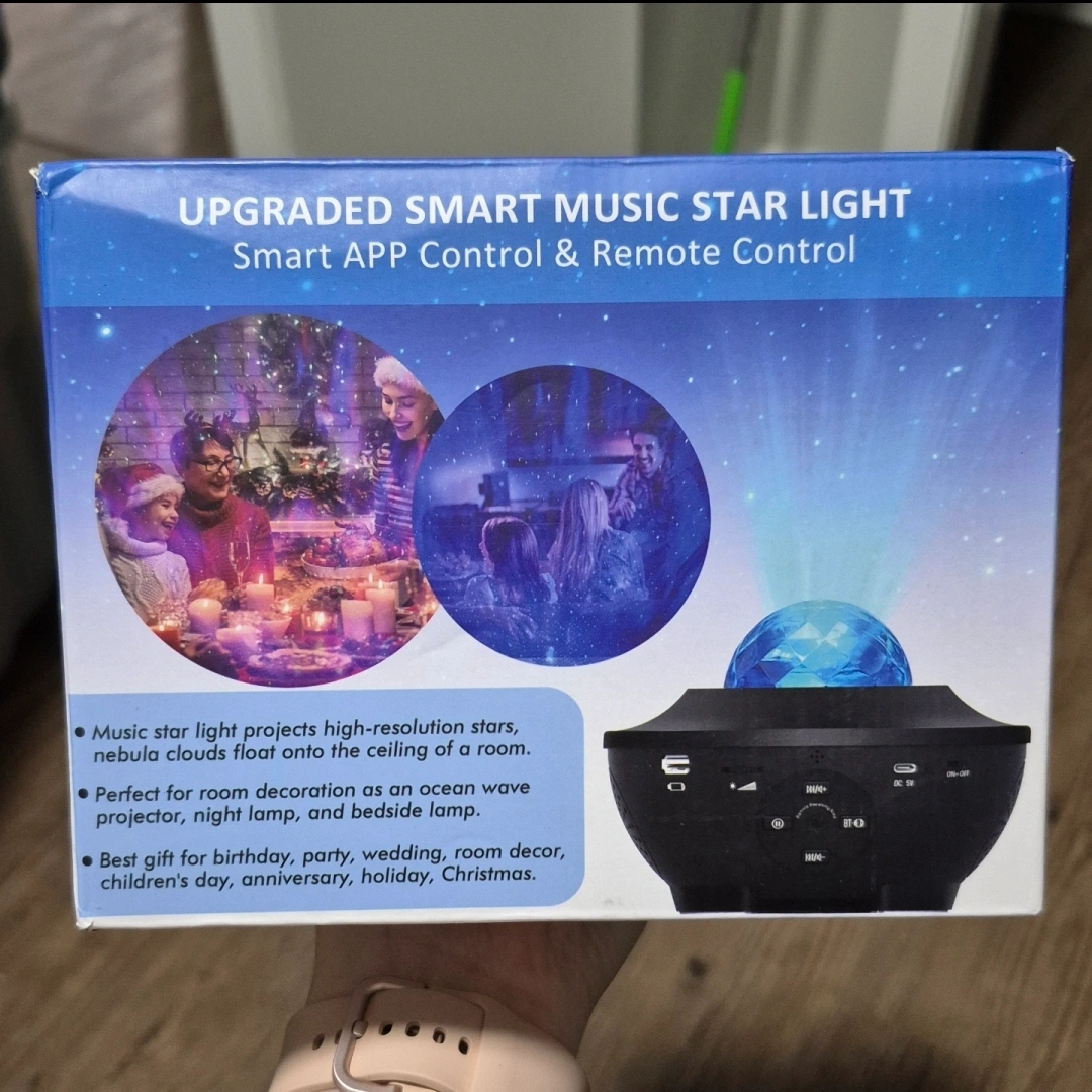 1000+Create a relaxing atmosphere with this Upgraded Smart Music Star Light projector!Projects high-resolution stars and nebula clouds onto a room's ceiling. Perfect for room decoration, night lamp, or bedside lamp. Includes smart APP control and remote control. Great gift for birthdays, parties, weddings, or holidays. Brand new purchased from Amazon as a gift but never got gifted. Perfect condition. Smoke/pet/420/kids/everything free home.