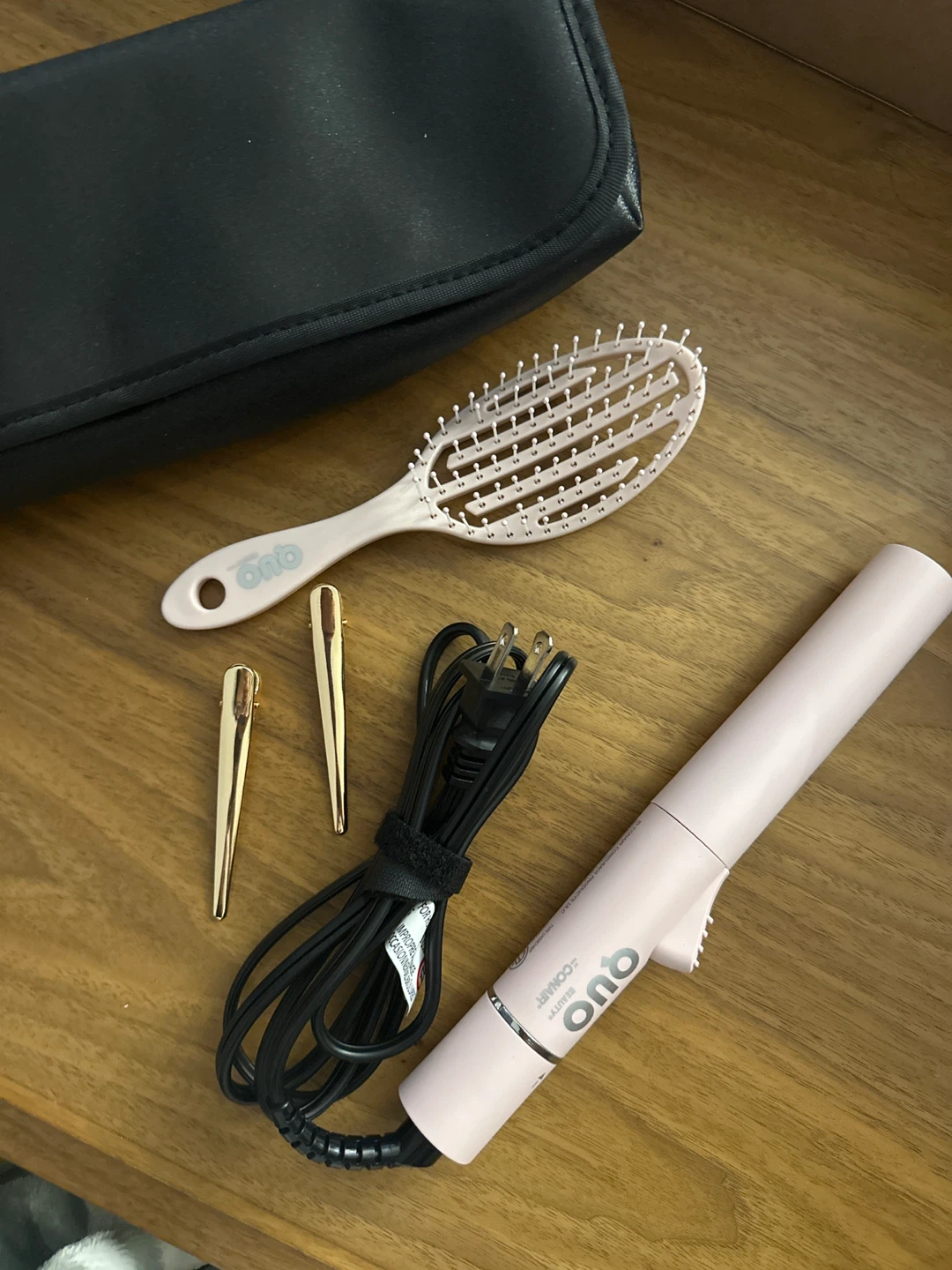 Selling a never been used Quo Beauty hair styling set! It comes with a hair brush, curling iron, and two gold hair clips. Also included is a convenient carrying case for easy storage and travel.