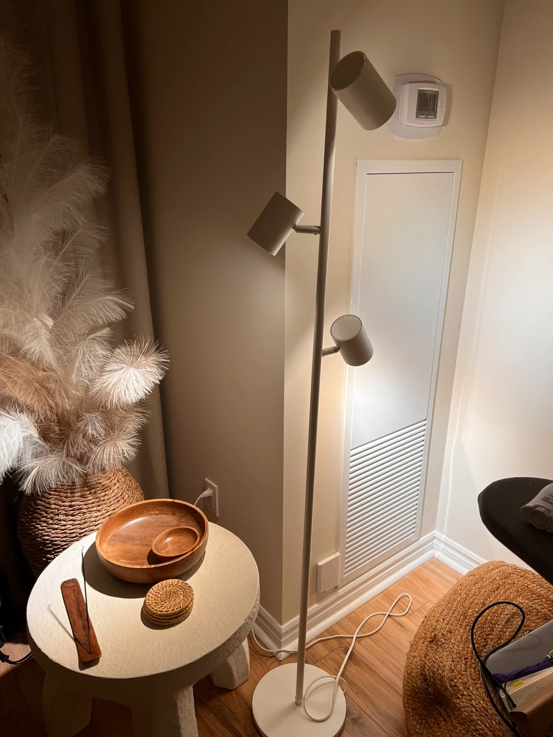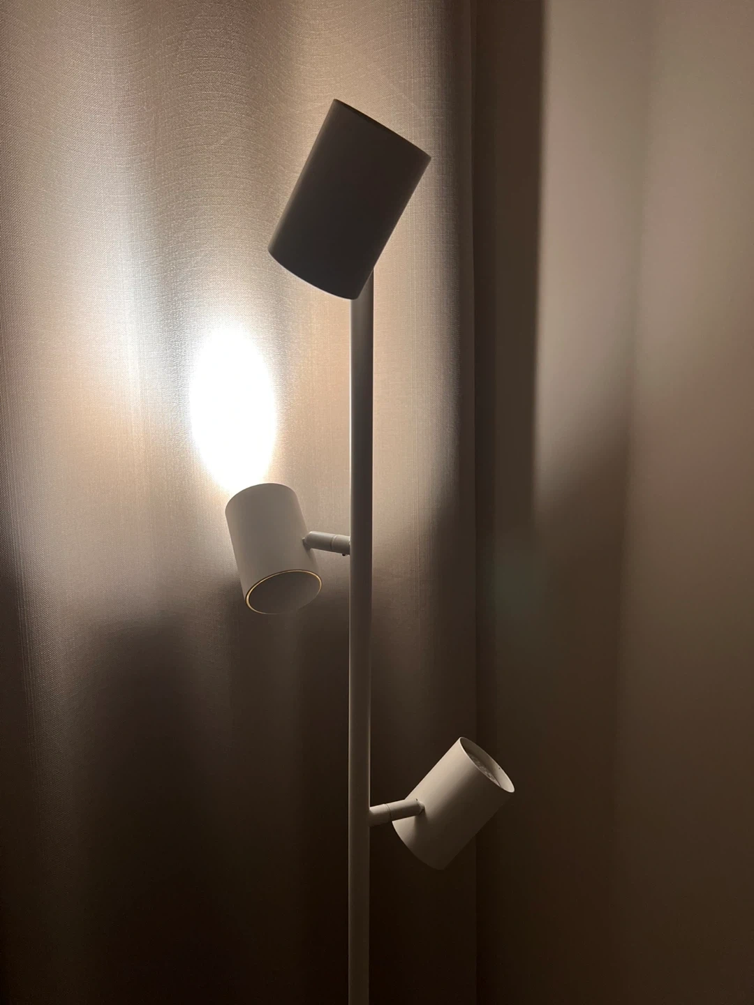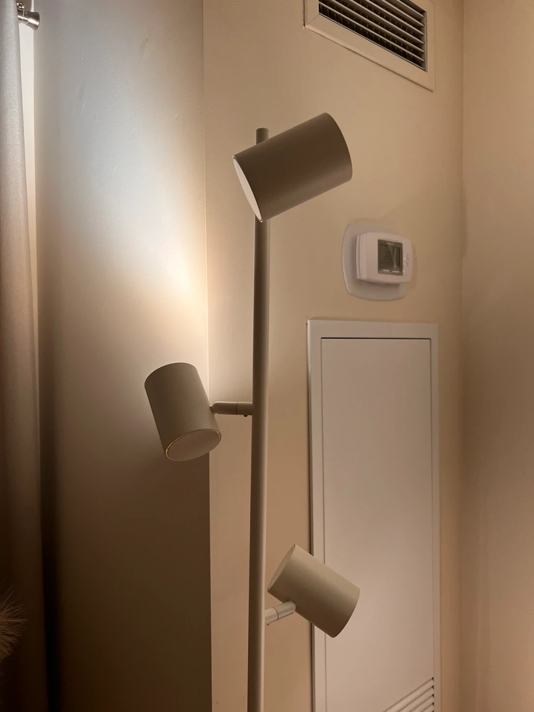 632‼️ part of a huge MOVE OUT SALE 🚨 Selling a modern floor lamp with a unique multi-head design! It's in great shape and would look lovely in any living space. The white colour makes it easy to match with any decor. It provides ample light and adds a touch of contemporary style to your home. The three 💡 can move towards where you need it to go. Will come with the three light bulbs. You can control how many of them you want on and off. They each have their own individual buttons etc. Very sturdy & easy to carry. Cash only please. Thank you!!!