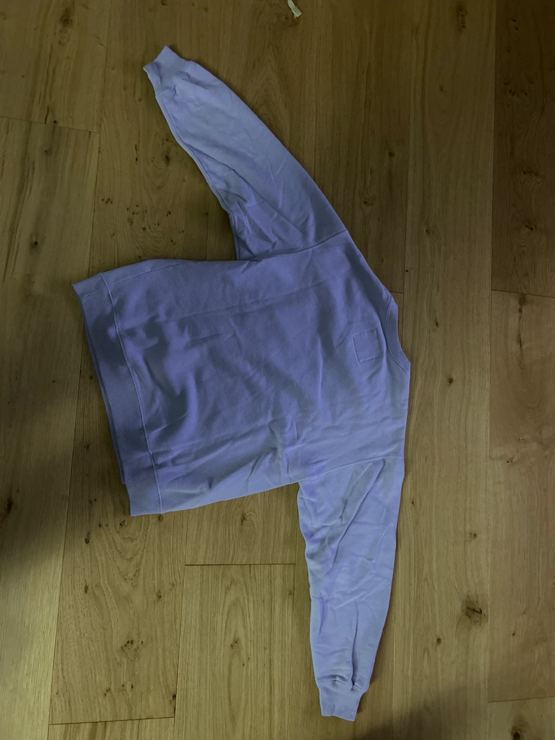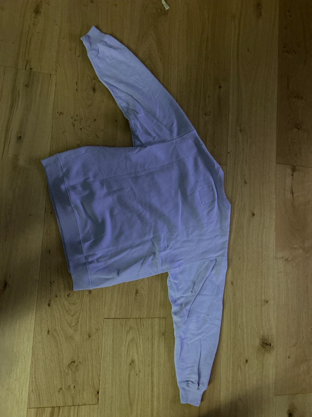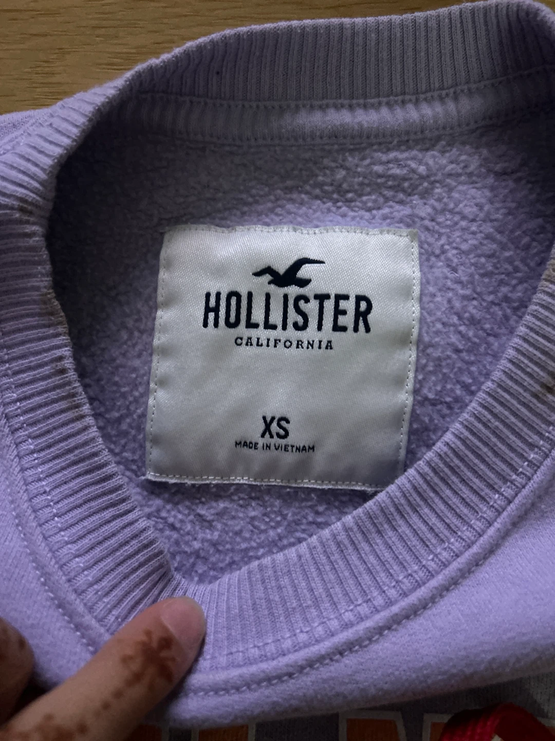 Selling a Hollister sweatshirt in size XS. It's a light purple colour with "Santa Monica California" printed on the front. Great for a comfy, casual look!