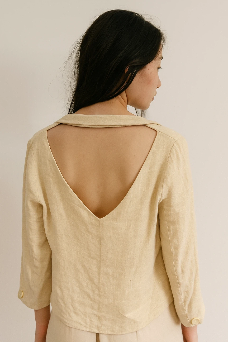 120Goddess Wing Beige Linen Blend Blazer - Size Small Selling a stylish beige blazer from Goddess Wing. It's a size small and made from a blend of 55% linen and 45% cotton. Great for layering or wearing on its own! Clean, smoke free home Pick up in North Ajax