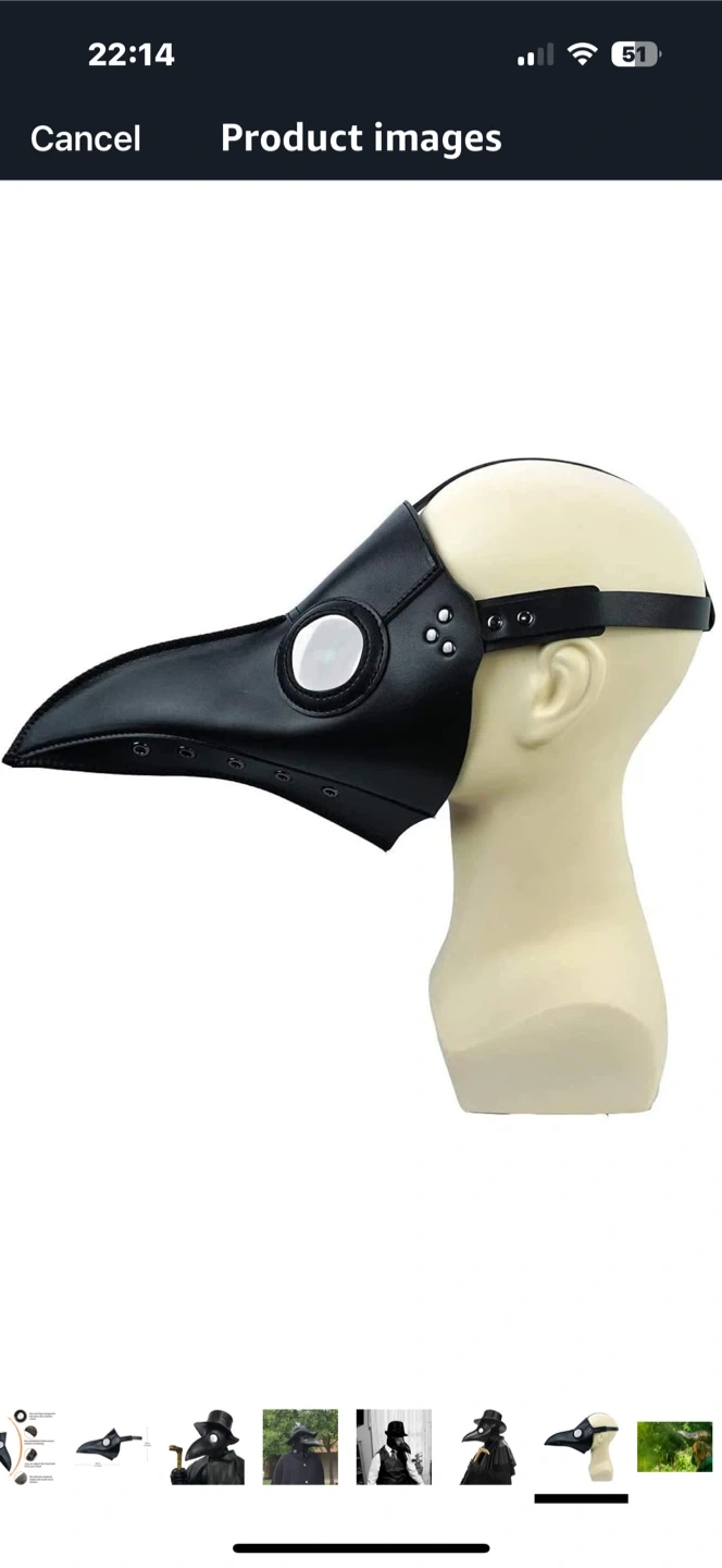60PartyHop leather black mask Bird beak. New