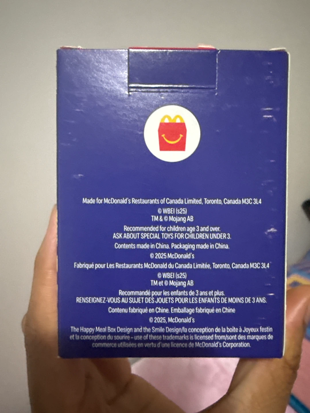 McDonald's Minecraft Movie figure for free. It's recommended for children age 3 and over. Packaging made in China