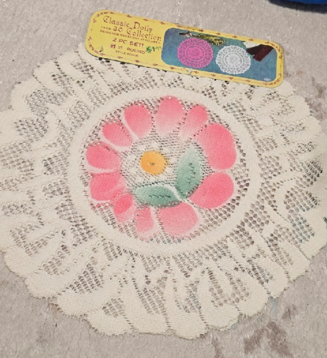 Selling a Classic Doily Collection set! It includes two doilies, each 15 inches in diameter and round in shape. These doilies have a delicate lace design with a floral pattern in the centre, adding a touch of vintage charm to any space $5 for 10