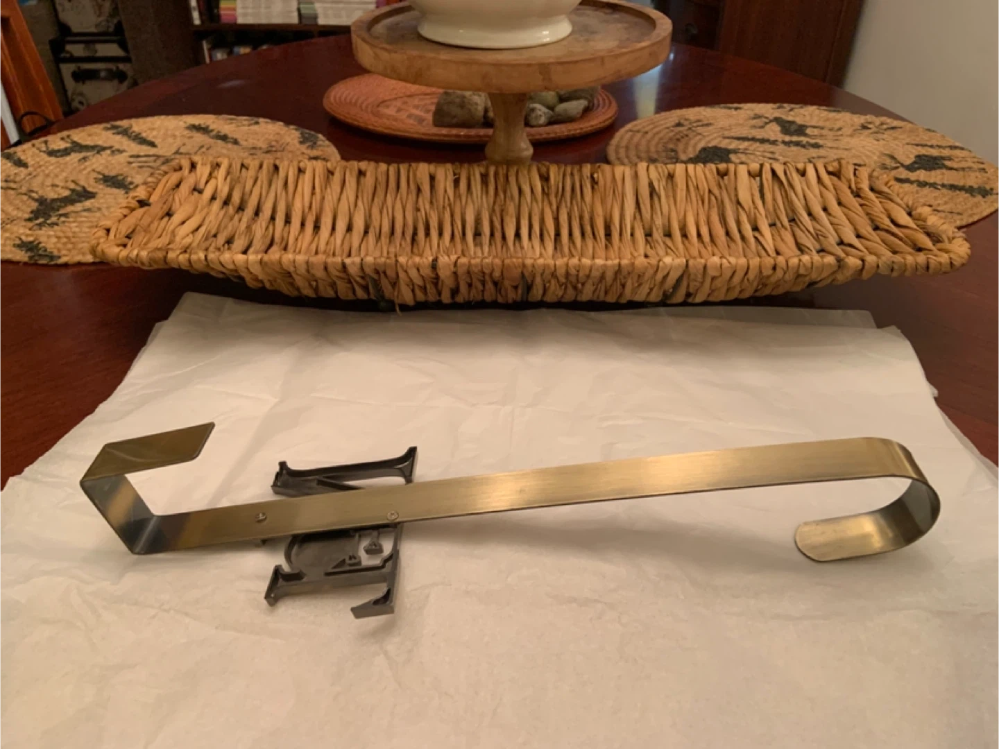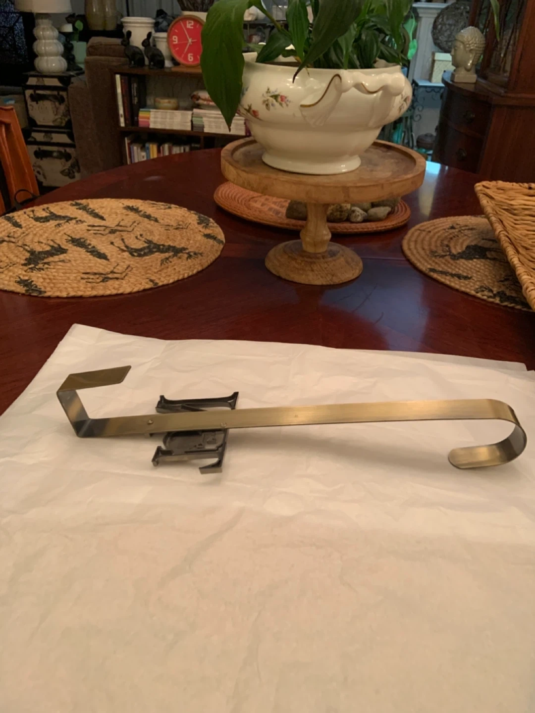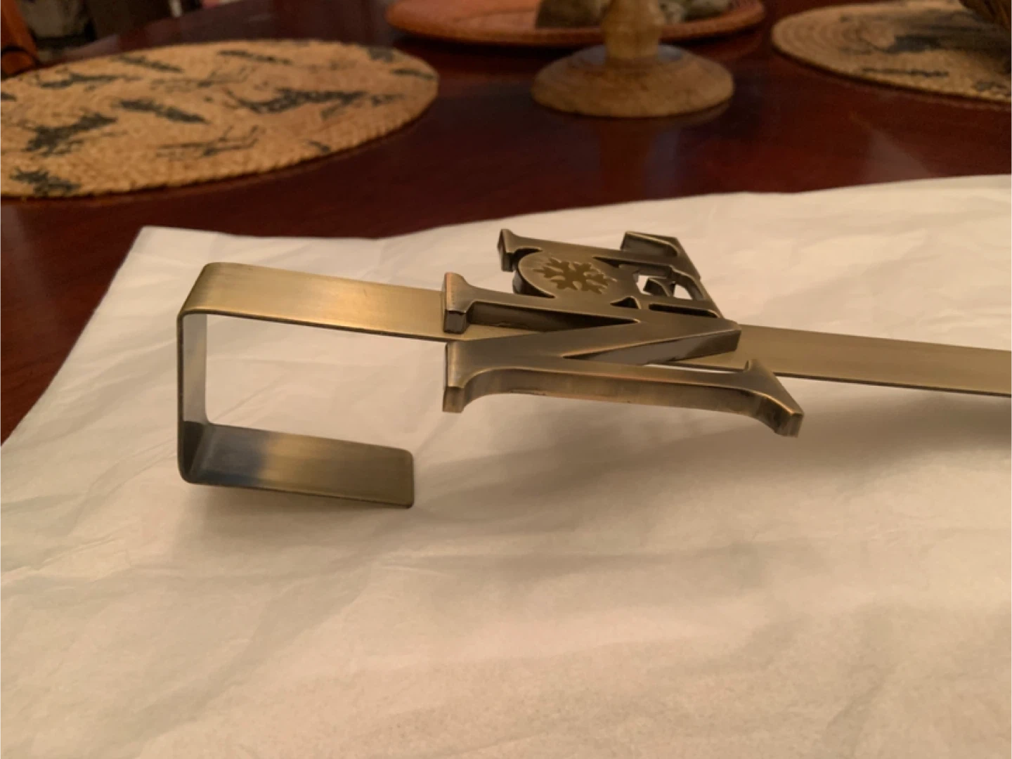 96• Main Intersections are HURONTARIO•STEELES just before downtown Brampton • NEVER USED • This is a metal wreath hanger with a "NOEL" design, often used for Christmas decorations • The "O" in "NOEL" is replaced with a snowflake design • It is a type of over-the-door hanger that can be used to display wreaths, garlands, and other decorations without damaging the doo • Product Type: Wreath hanger • Design: "NOEL" with a snowflake • Material: Metal • Finish: gold, brass or bronze finish • Size• ‘15” INCHES • Peel Village Area