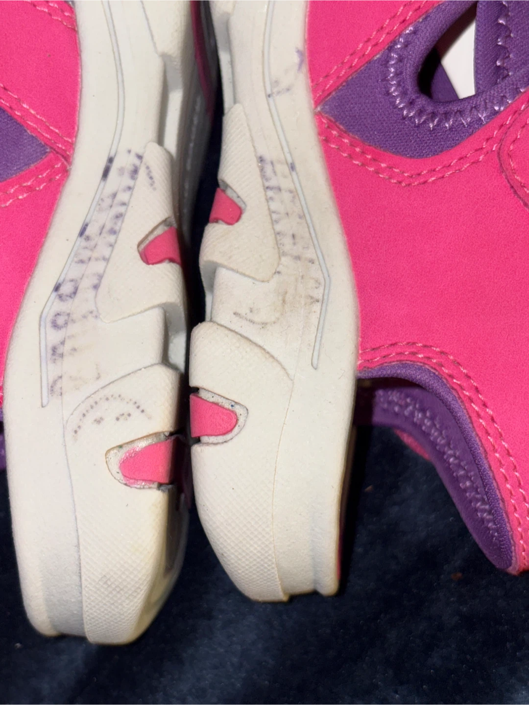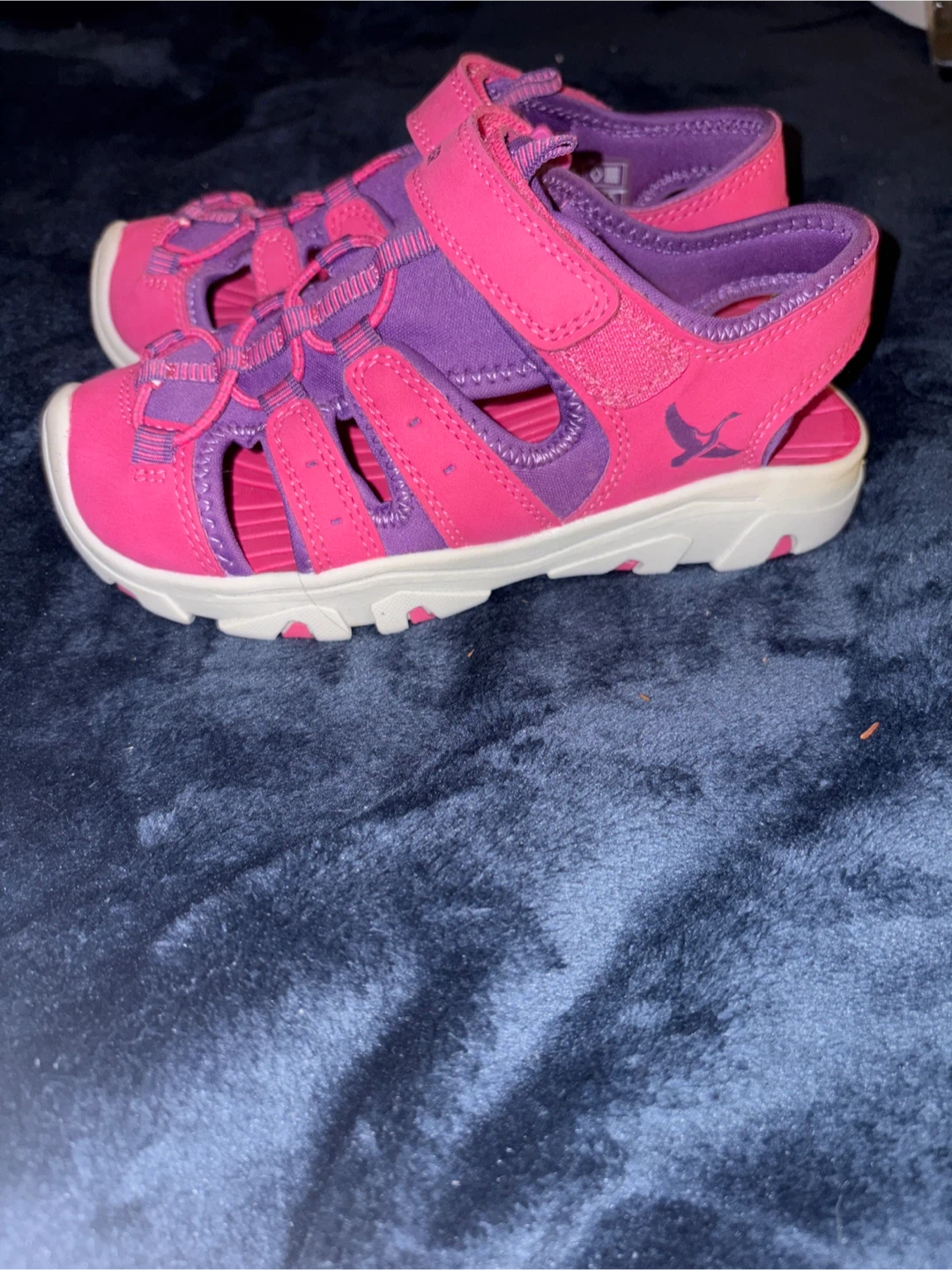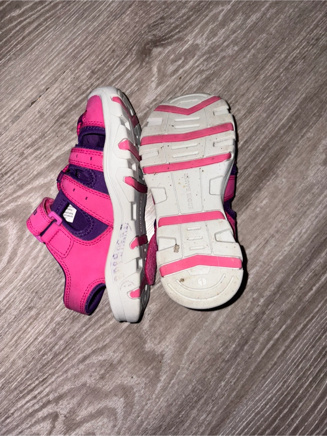 These adorable Eddie Bauer sandals are perfect for your little one! They're in a cute pink and purple colour combo. The soles show some wear, but they're still ready for lots of fun adventures