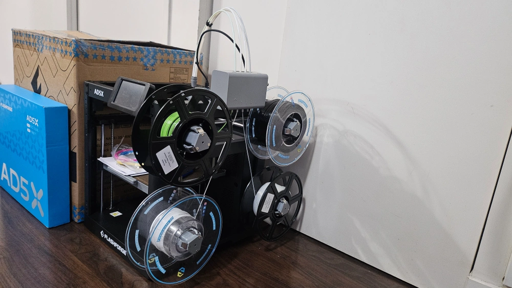 I'm selling a Flashforge AD5X multicolour 3D printer, a versatile machine perfect for hobbyists and professionals alike, complete with a DIY enclosure kit to maintain optimal printing conditions. This printer has been lightly used and is in excellent working condition, ready to bring your designs to life with precision and vibrant colours.