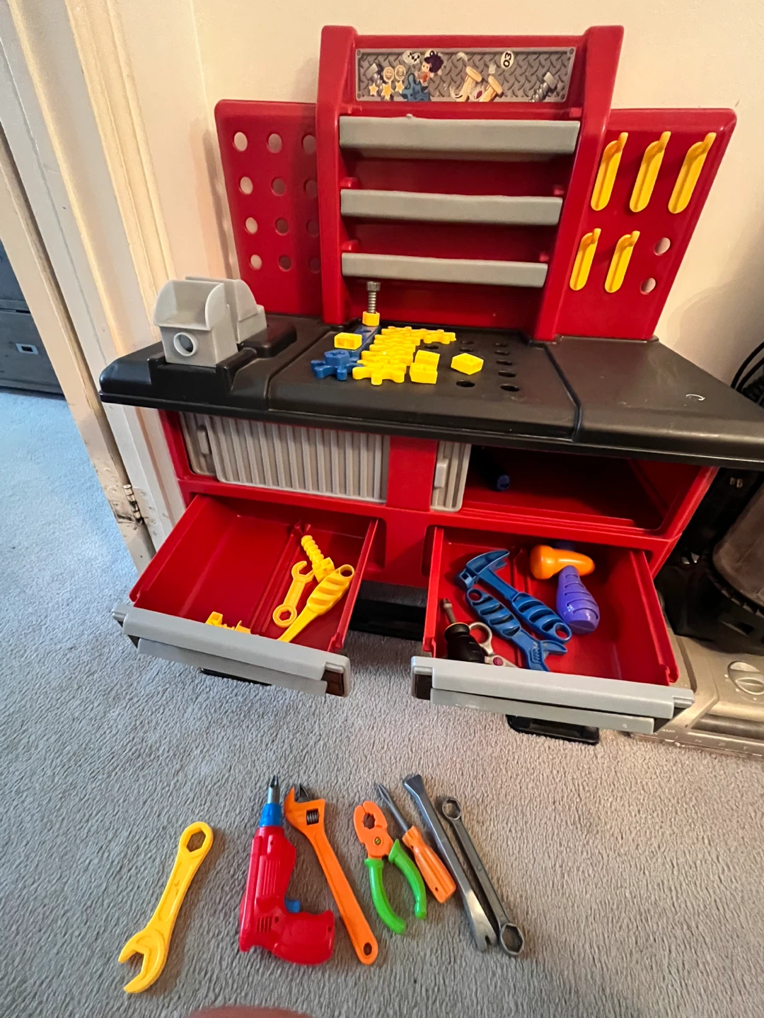 Tool bench playset for kids! Lots of fun to be had with this. Includes a variety of tools and accessories to keep your little one entertained. Perfect for imaginative play and developing fine motor skills. Lots of tools included. Hours of fun and play.