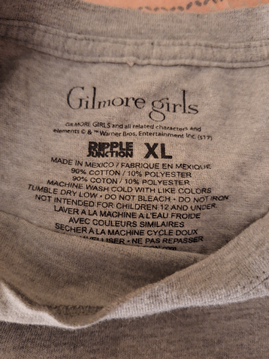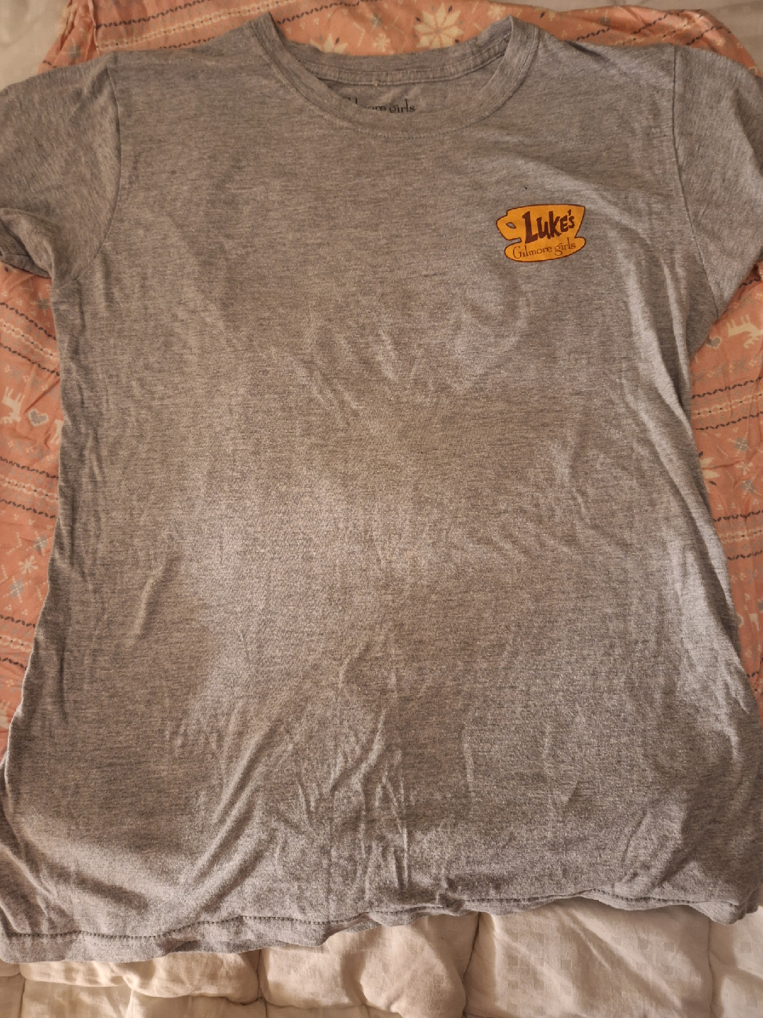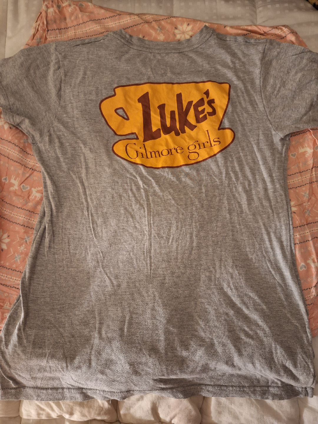 Selling a Gilmore Girls t-shirt featuring Luke's Diner! It's a size XL and made of 90% cotton and 10% polyester. The shirt is grey with the Luke's Diner logo on the front and back. It's in great condition!